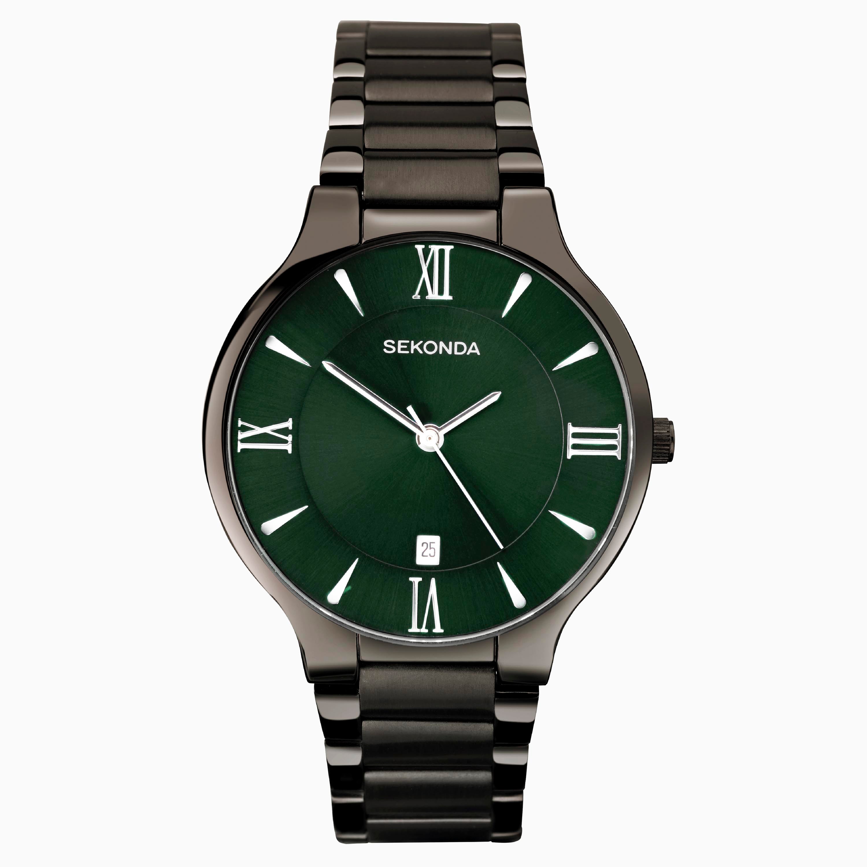 Sekonda Wilson Mens Watch | Gunmetal Case & Stainless Steel Bracelet with Green Dial | 30045