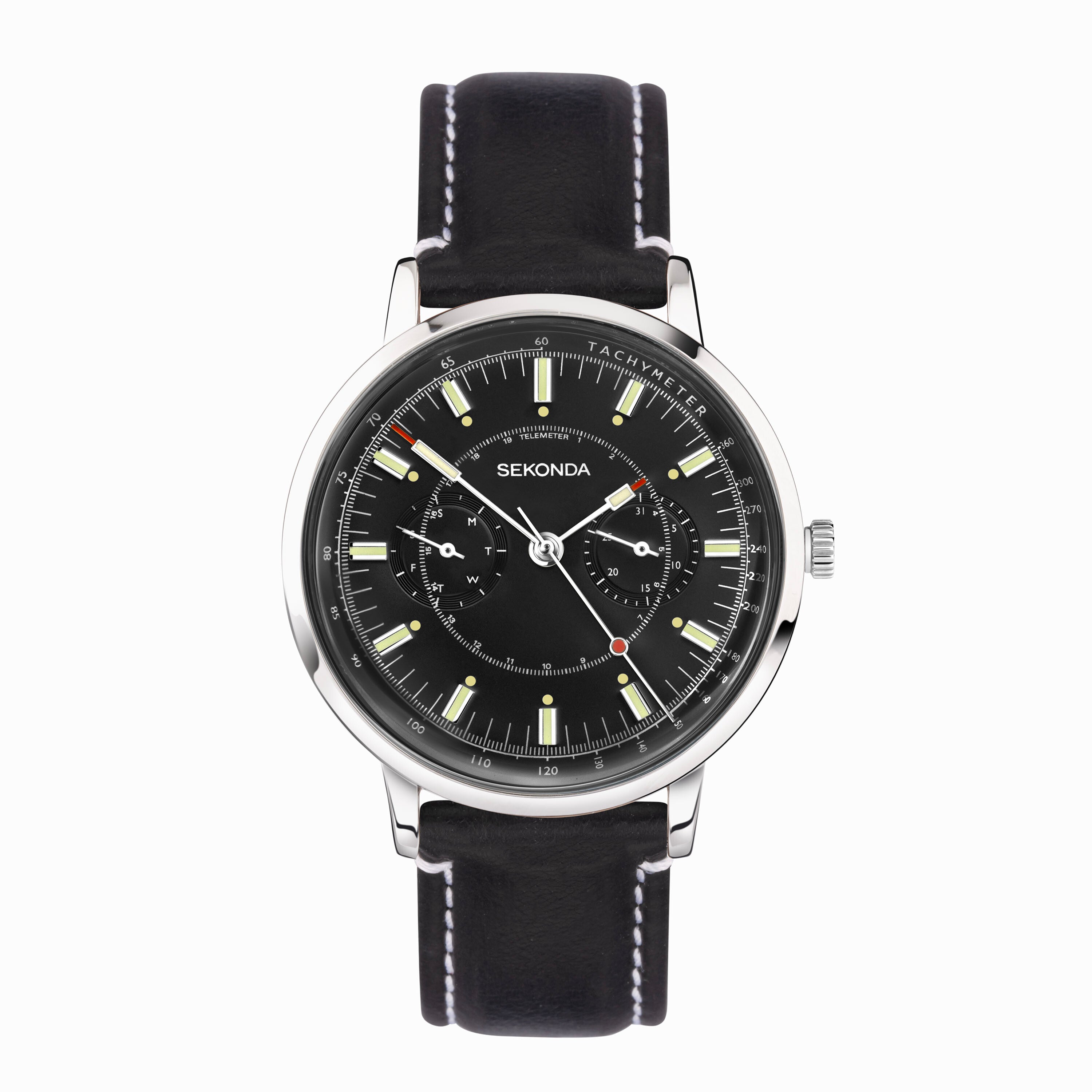 Sekonda 1978 Mens Watch | Silver Case & Black Leather Strap with Black Dial | 30098
