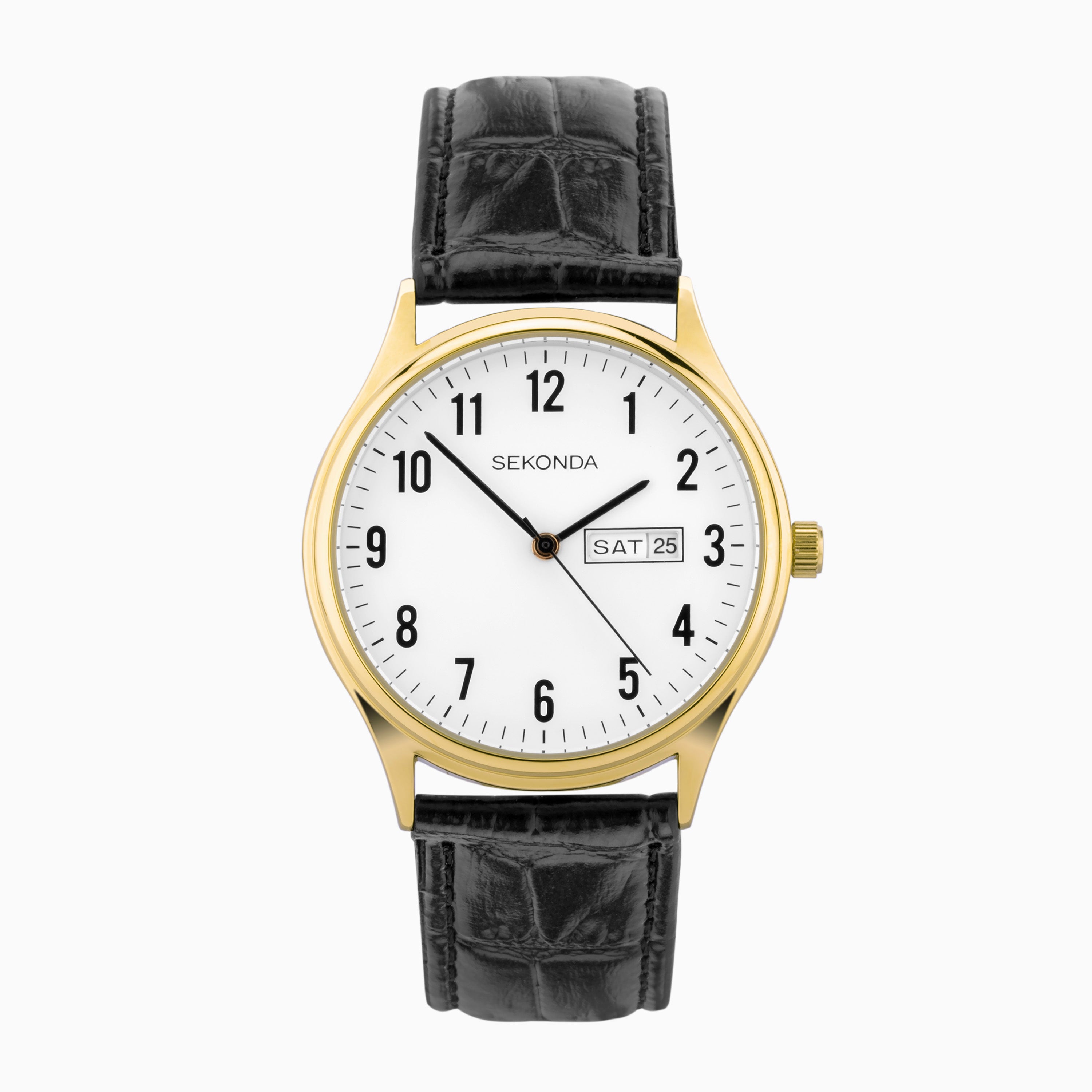 Sekonda Easy Reader Ladies Watch | Gold Alloy Case & Black Leather Strap with White Dial | 30123