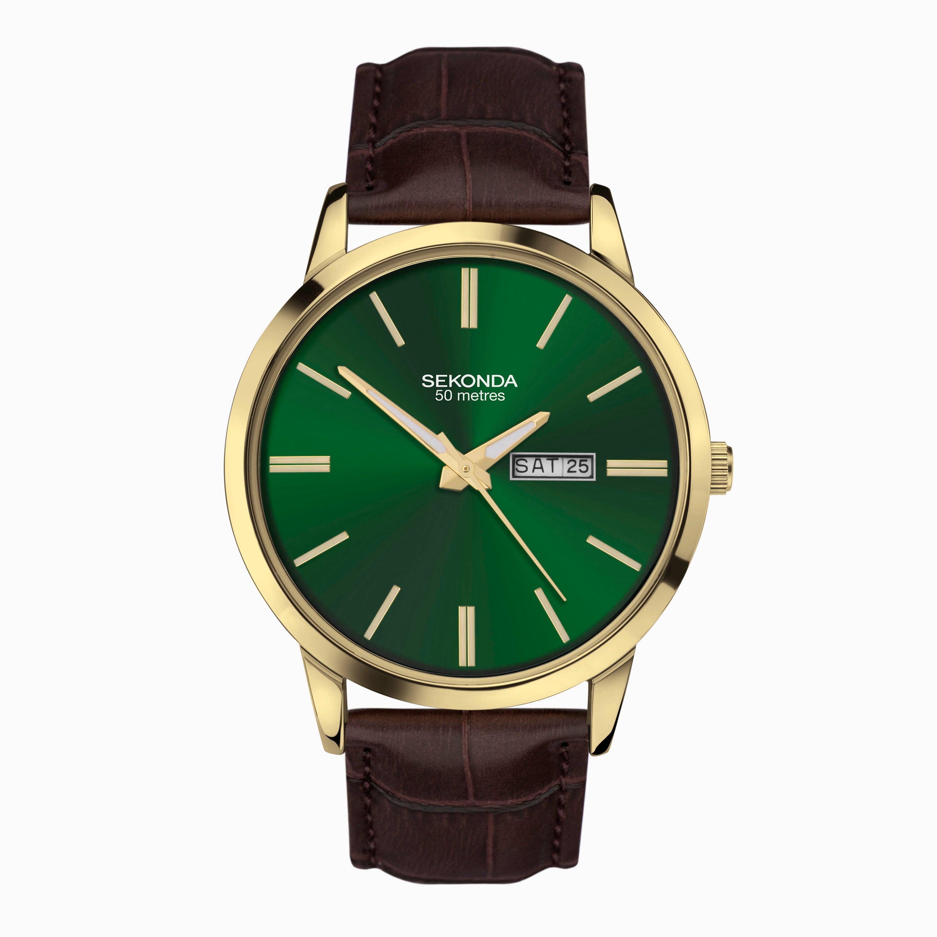 Sekonda Jackson Men’s Watch | Gold Alloy Case & Brown Leather Strap with Green Dial | 30151