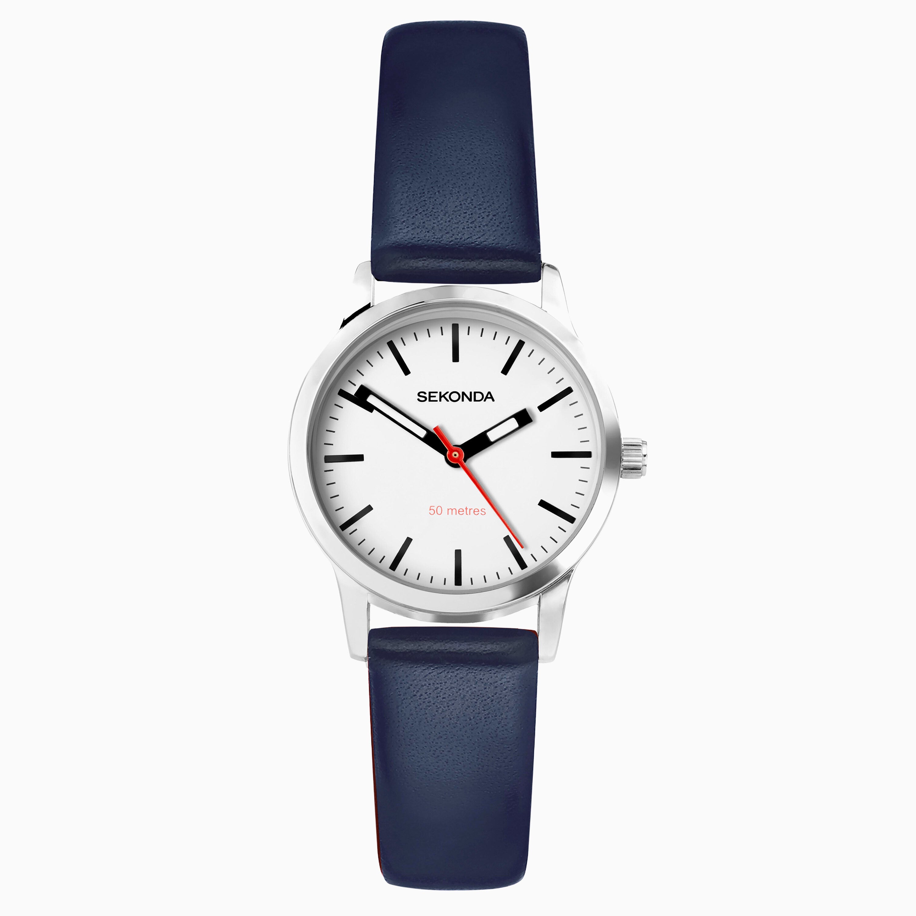 Sekonda Nordic Ladies Watch | Silver Case & Blue Leather Strap with White Dial | 40484