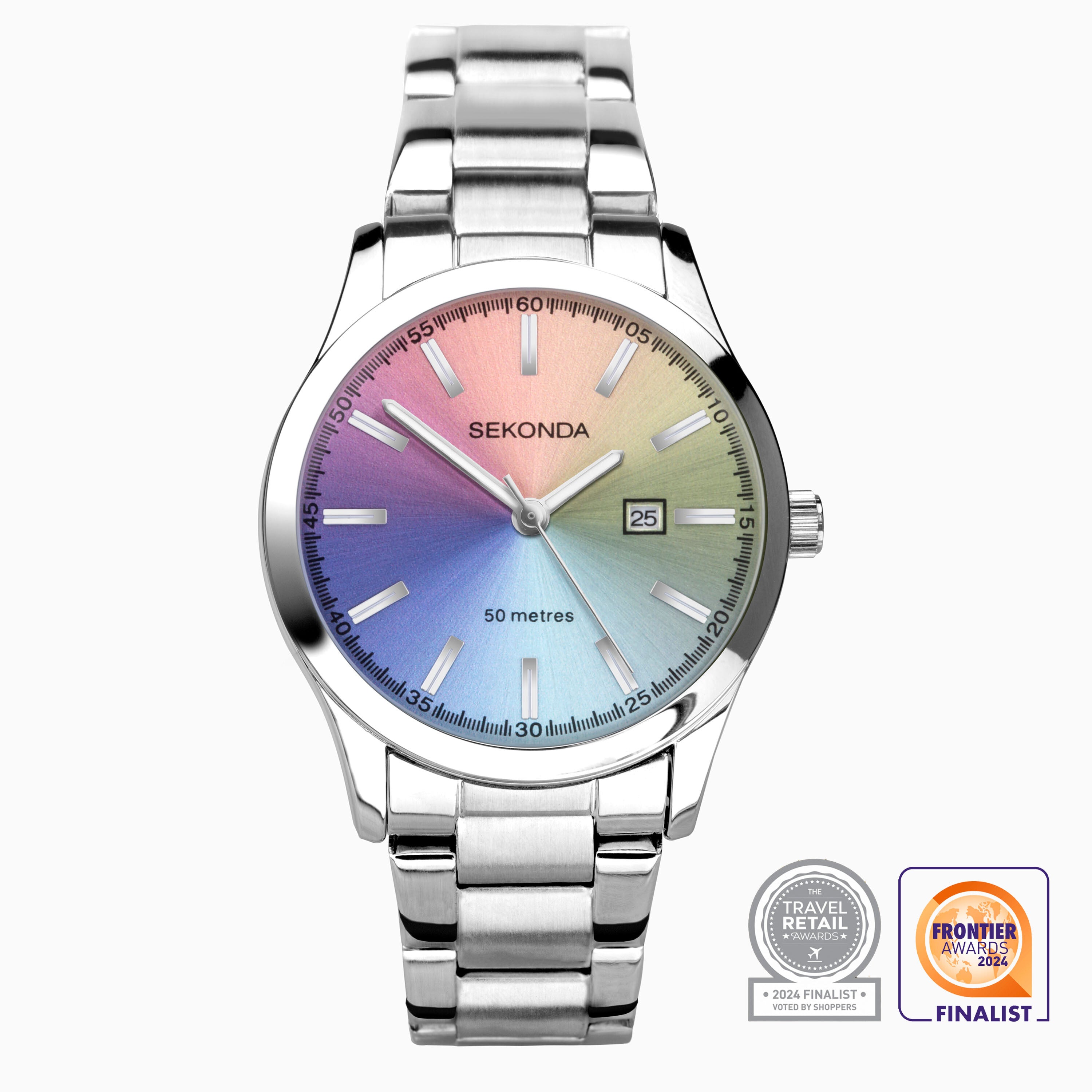 Sekonda Taylor Ladies Watch | Silver Alloy Case & Stainless Steel Bracelet with Rainbow Dial | 40534