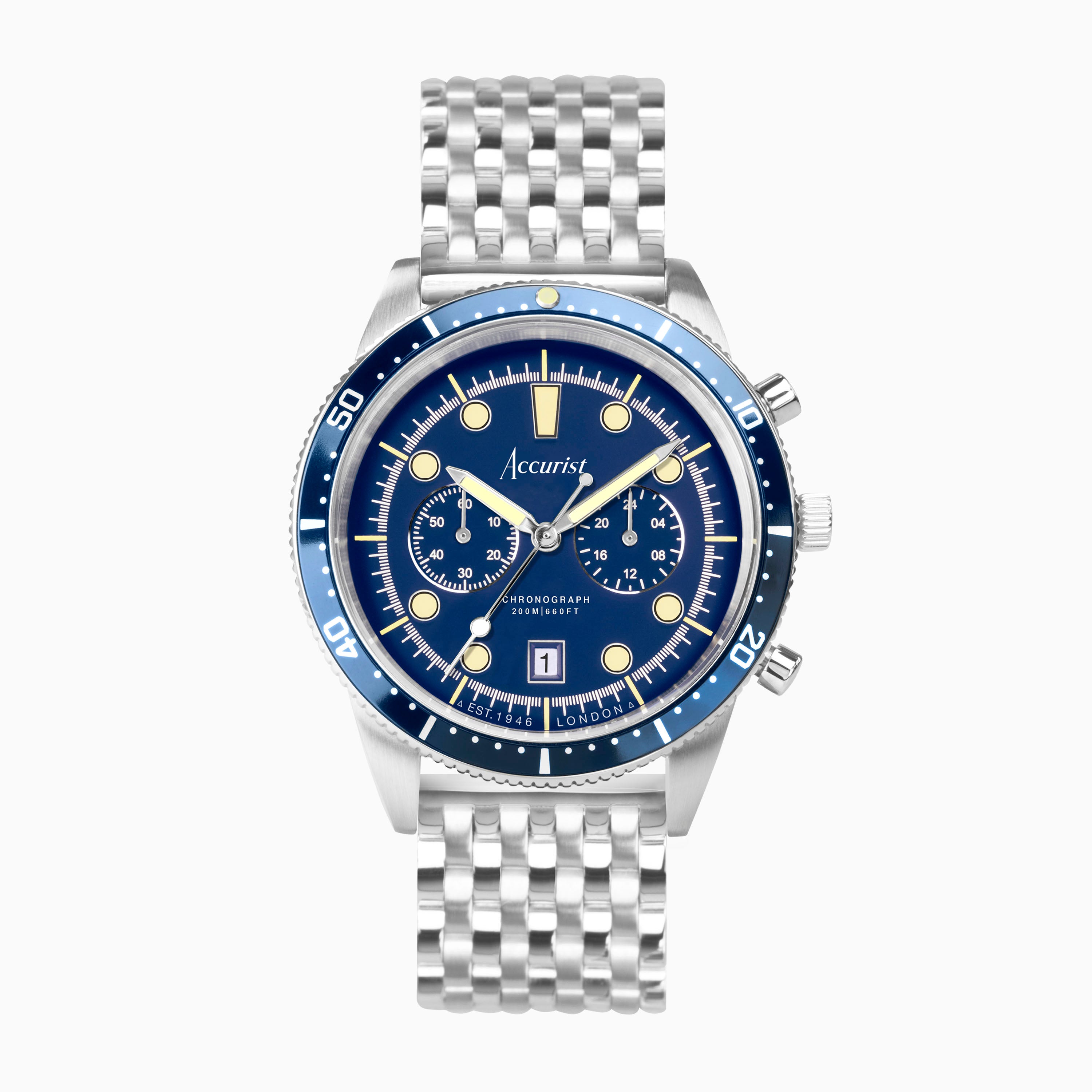 Accurist Dive Men's Chronograph Watch | Silver Case & Stainless Steel Bracelet with Windermere Blue Dial | 42mm