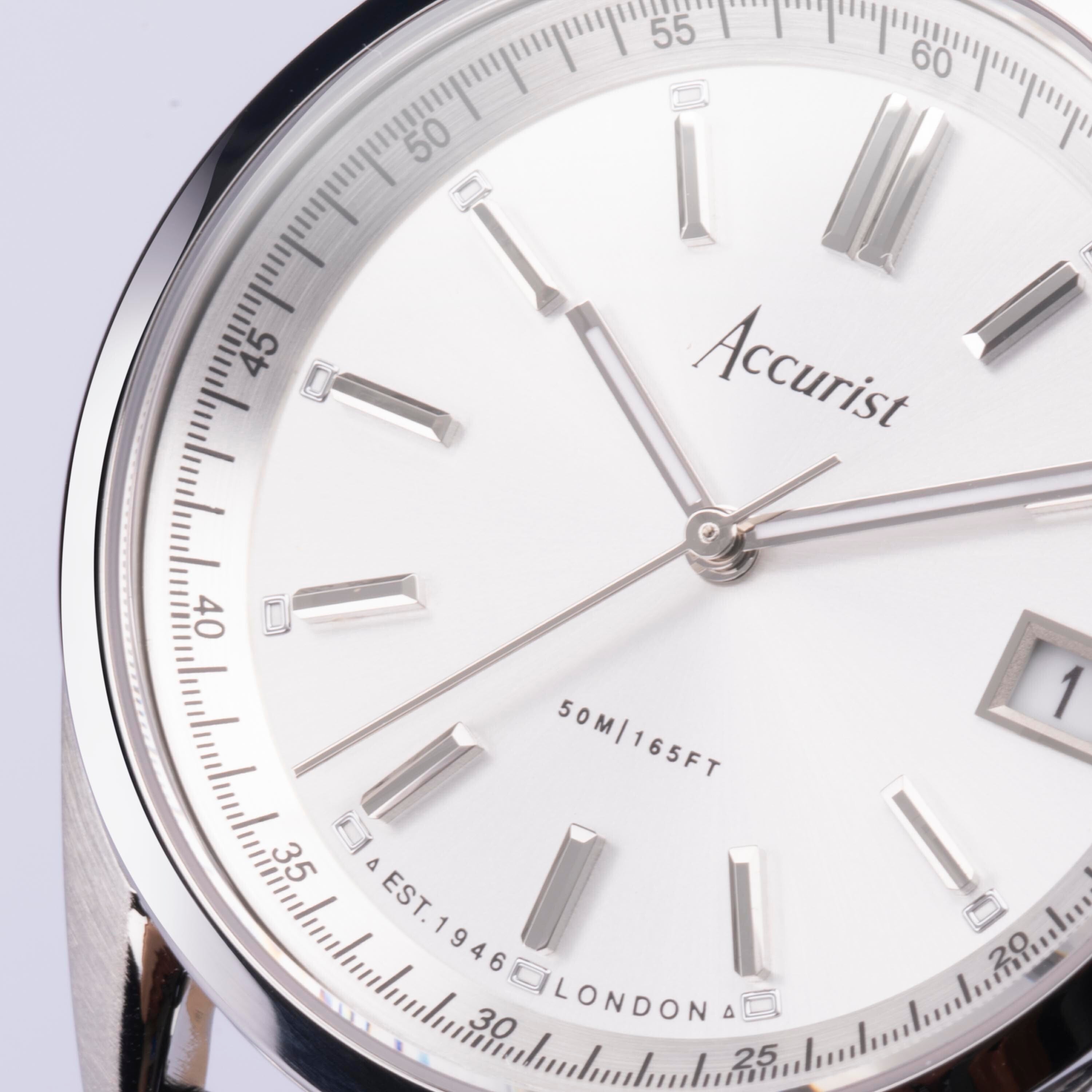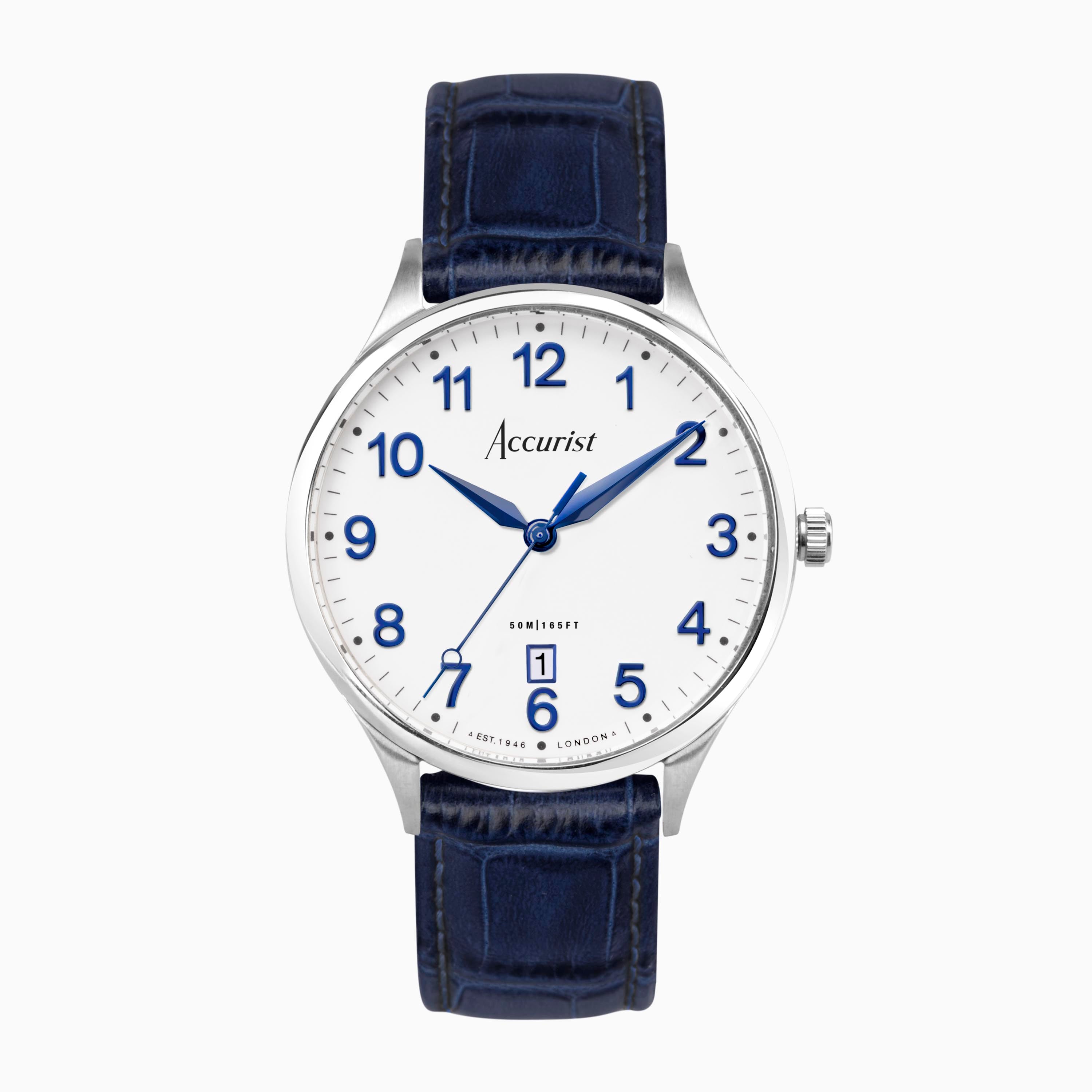 Accurist Classic Men's Watch | Silver Case & Blue Leather Strap with White Dial | 37mm
