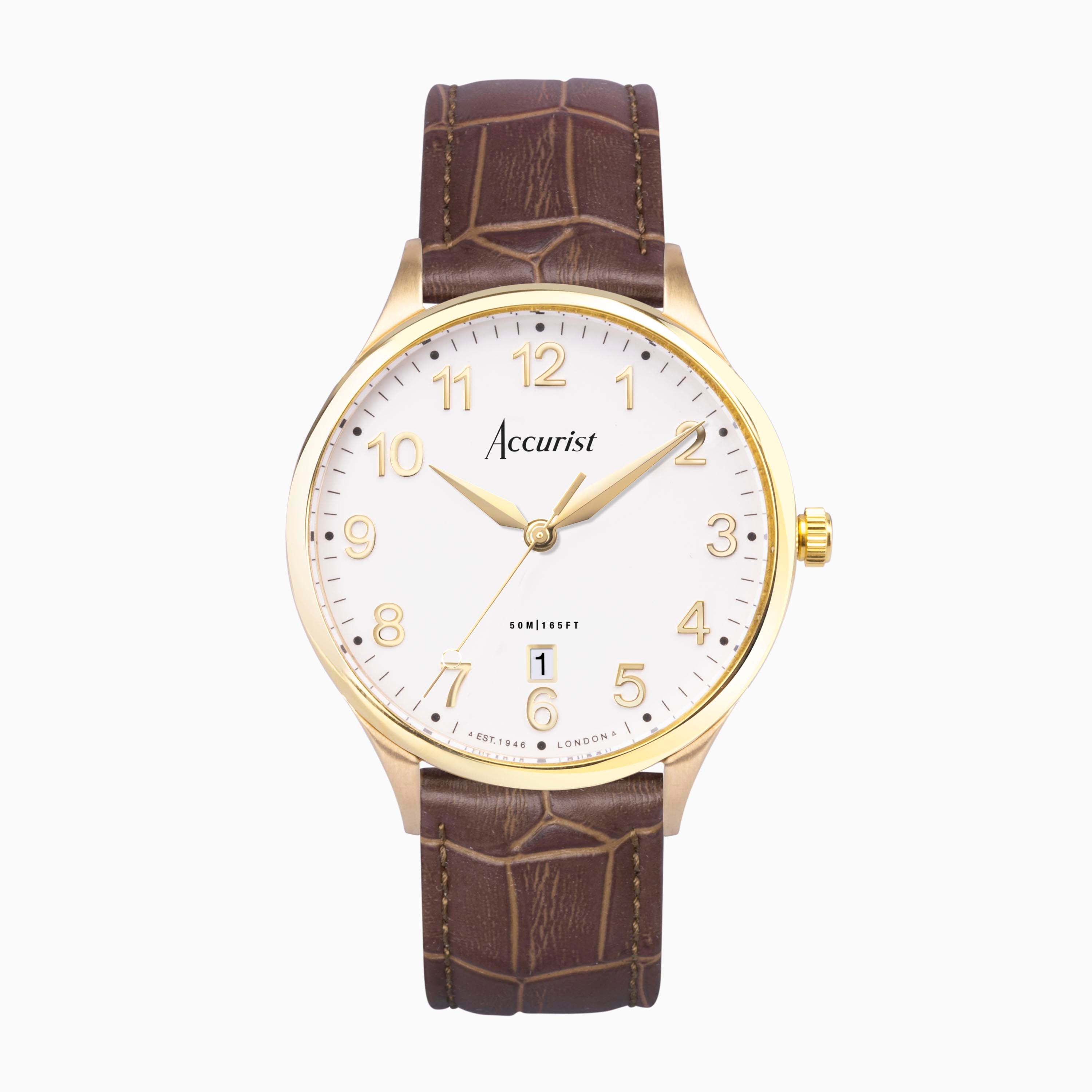 Accurist Classic Men's Watch | Gold Case & Brown Leather Strap with White Dial | 37mm