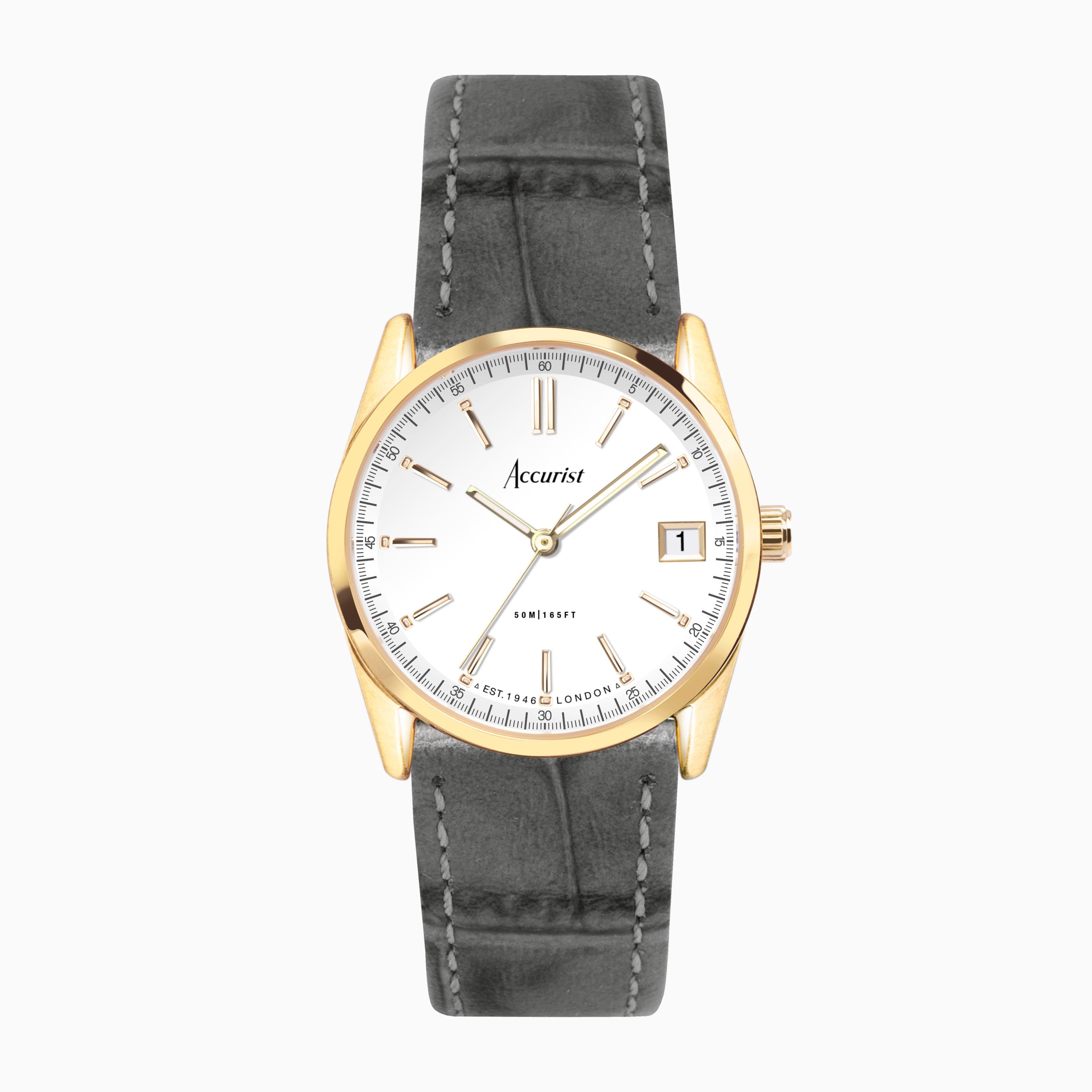Accurist Everyday Ladies Watch | Gold Case & Grey Leather Strap with White Dial | 30mm