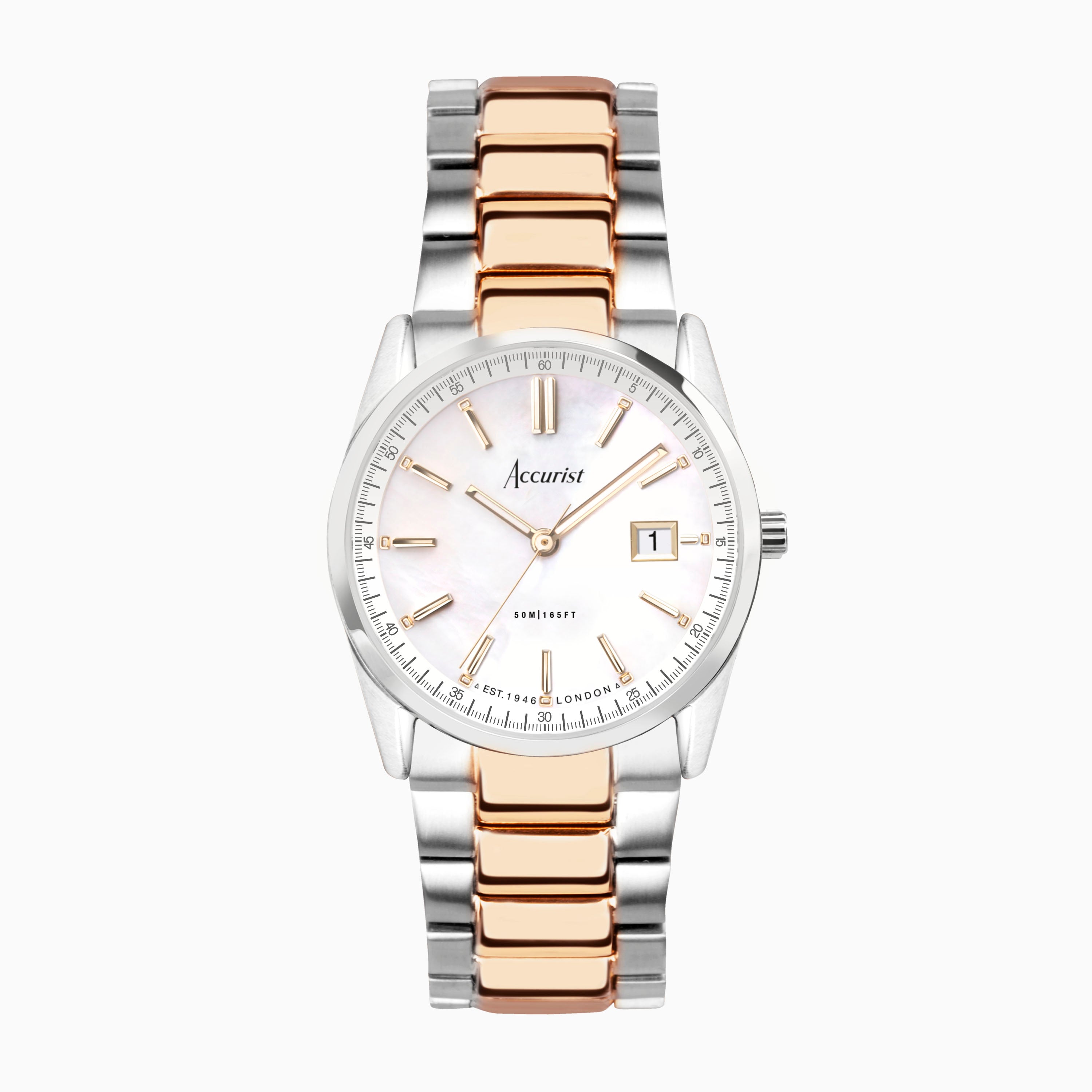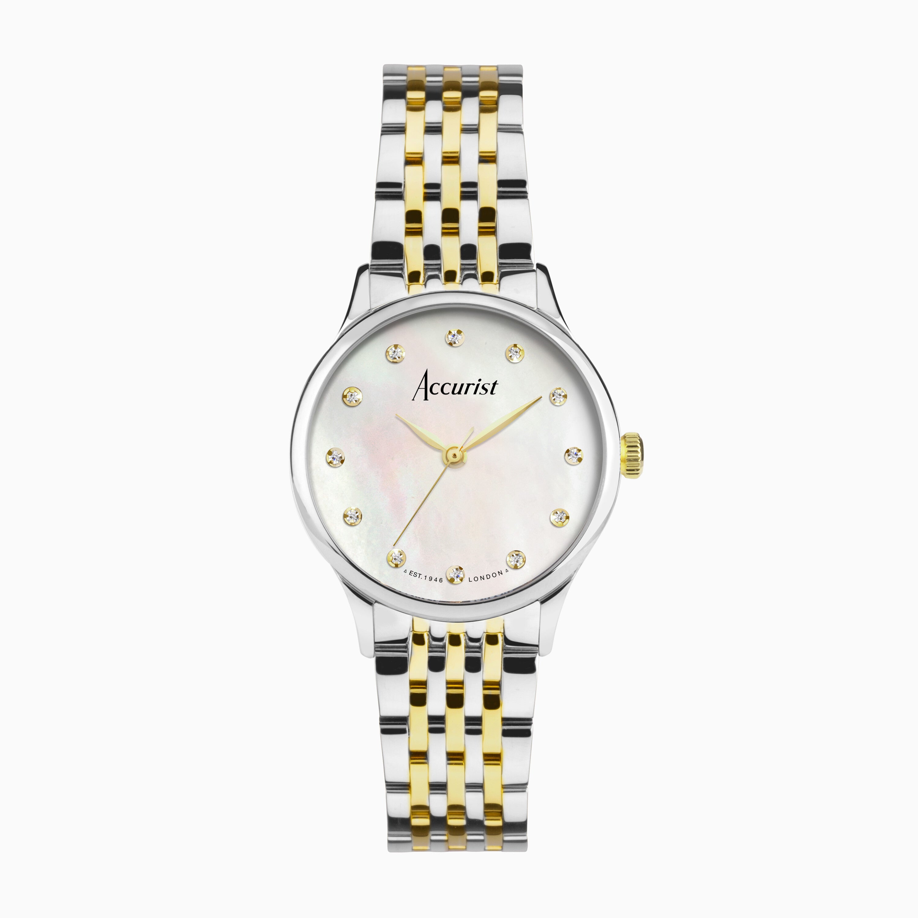 Accurist Dress Diamond Ladies Watch | Silver Stainless Steel Case & Two Tone Bracelet with White Mother of Pearl Dial | 28mm