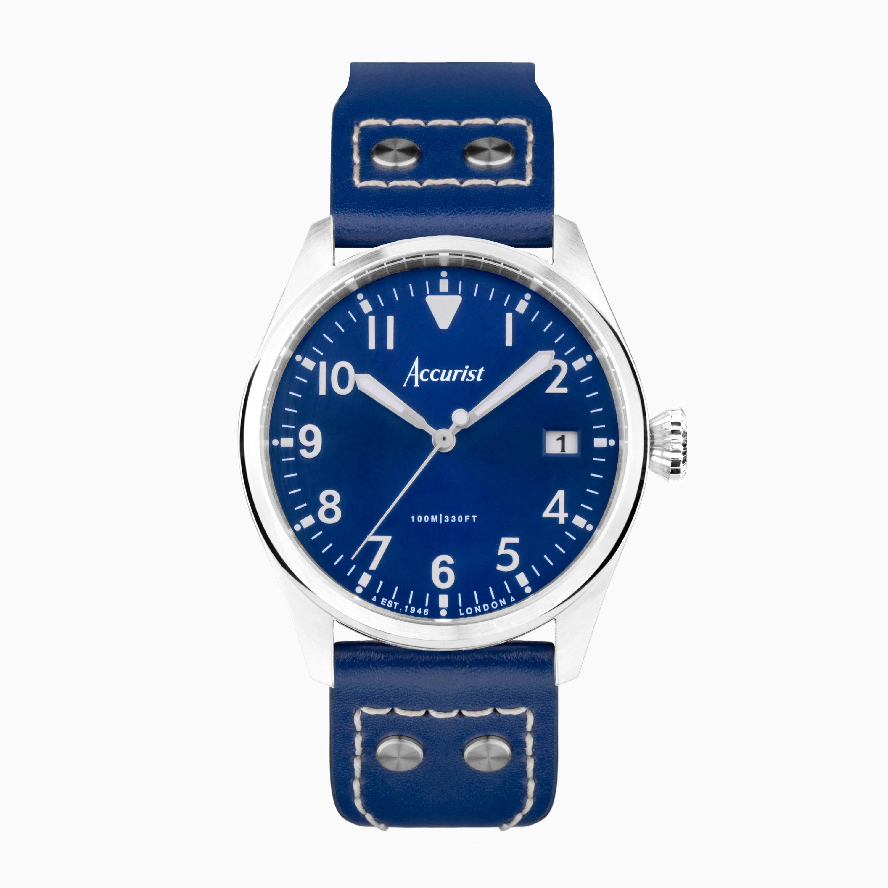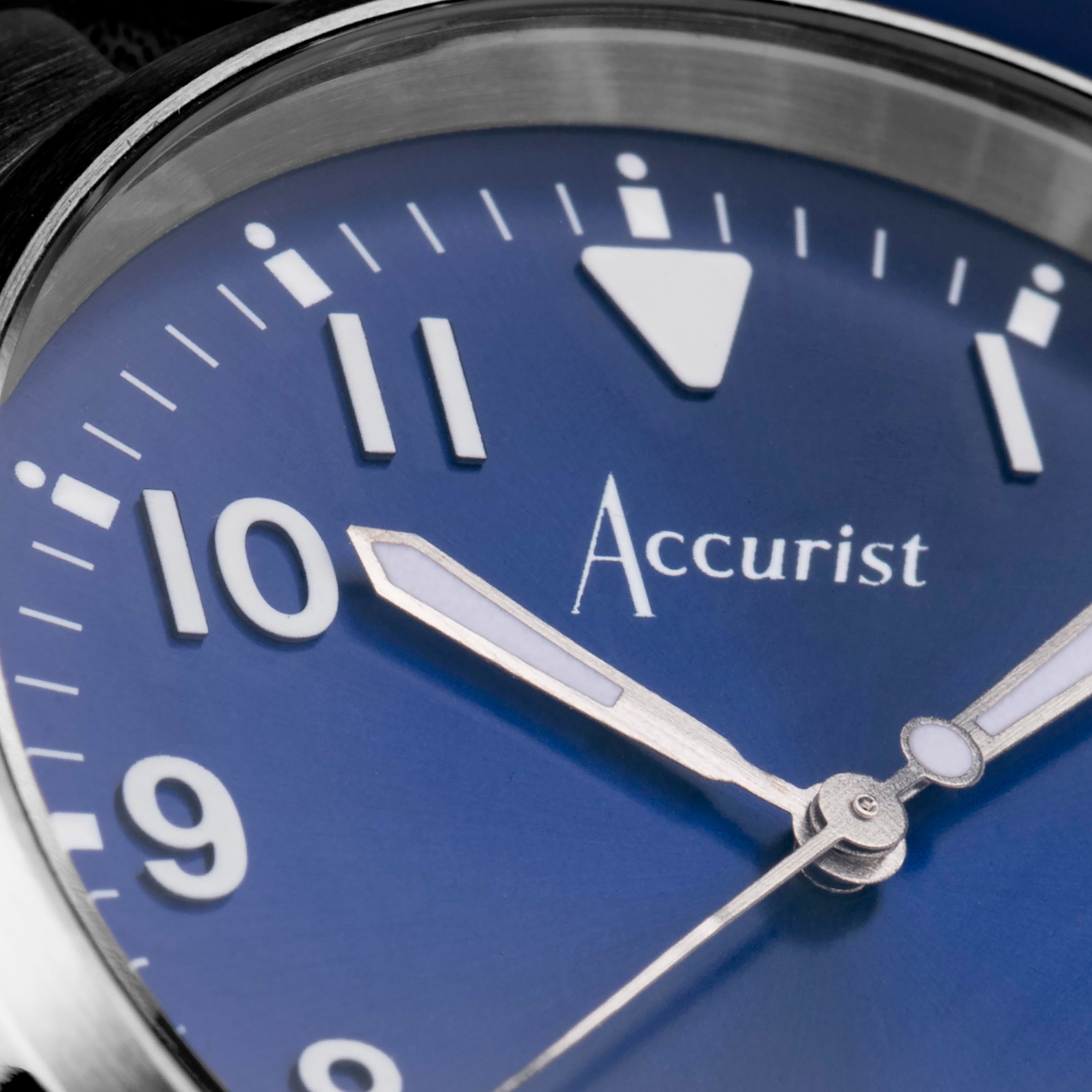 Accurist Aviation Men's Watch | Silver Case & Blue Leather Strap with Windsor Blue Dial | 41mm