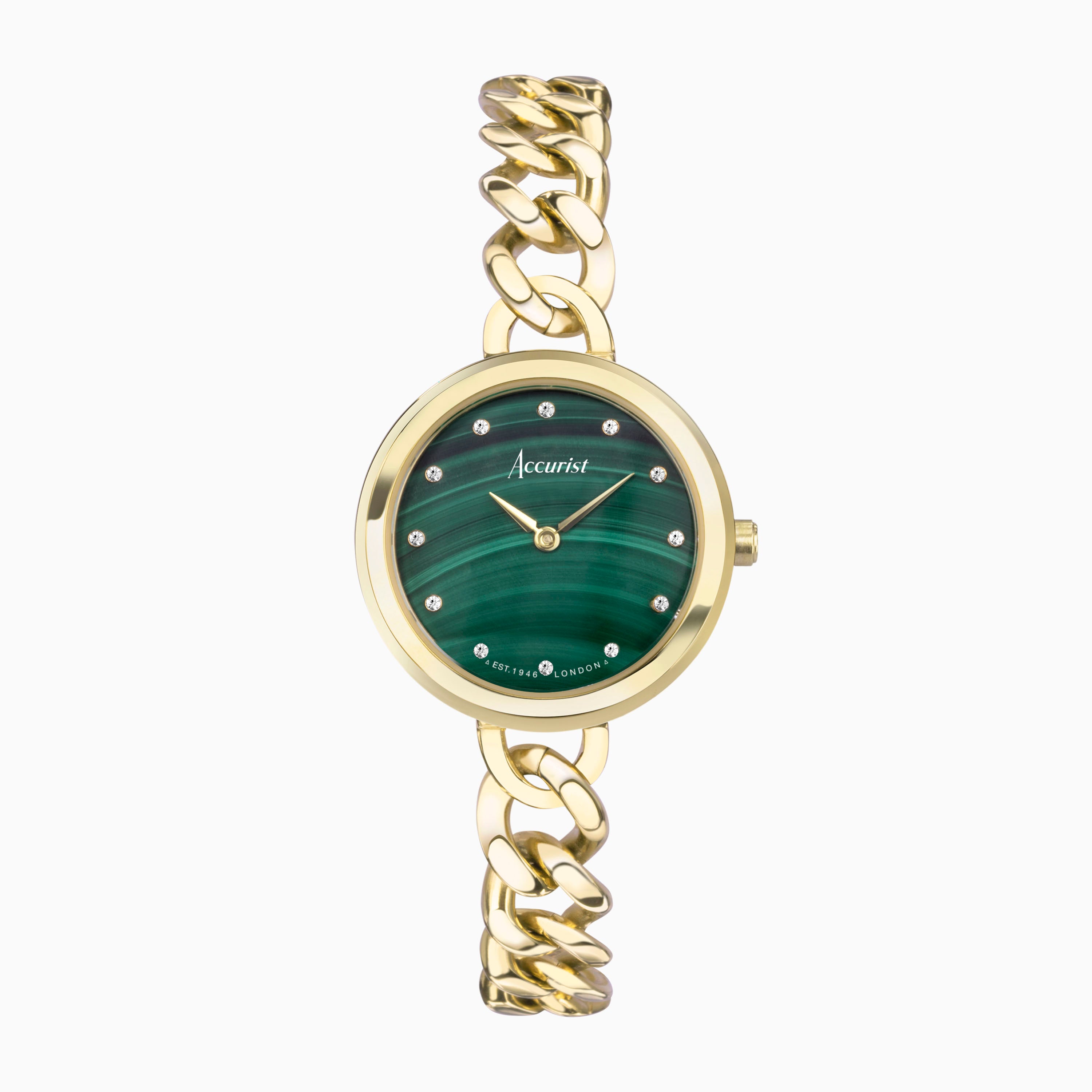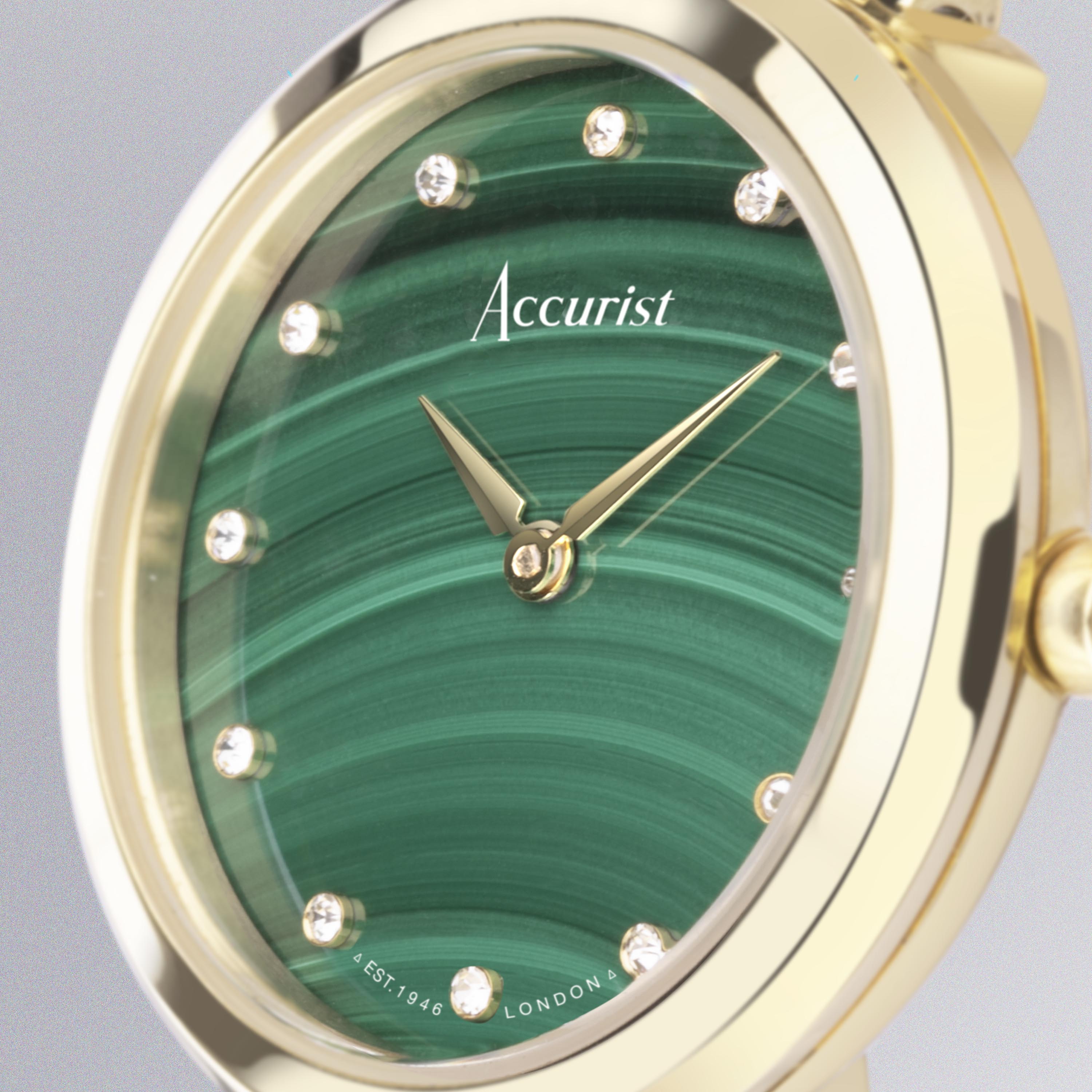 Accurist Jewellery Ladies Watch | Gold Case & Stainless Steel Bracelet with Green Malachite Dial | 28mm
