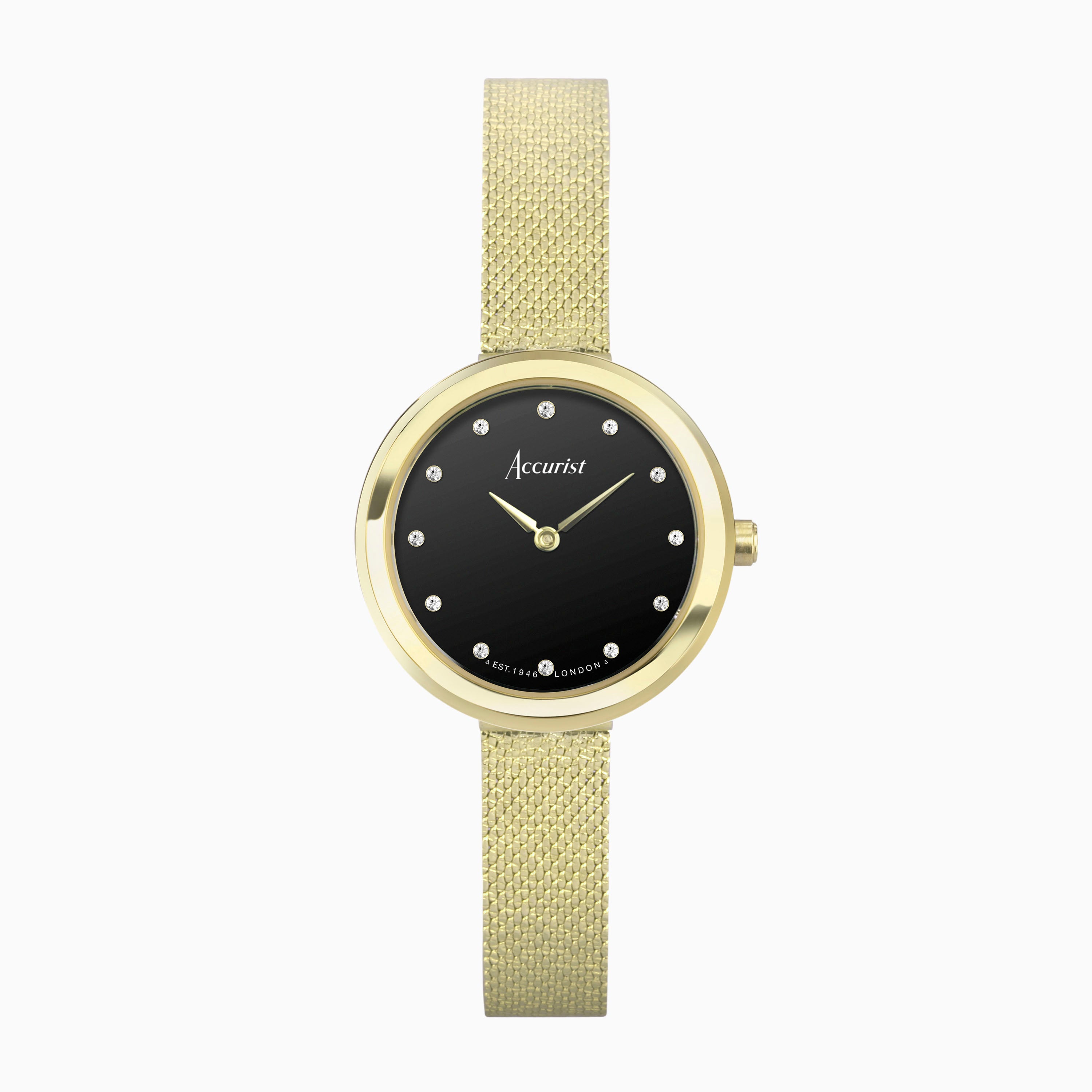 Accurist Jewellery Ladies Watch | Gold Case & Stainless Steel Bracelet with Black Onyx Dial | 28mm