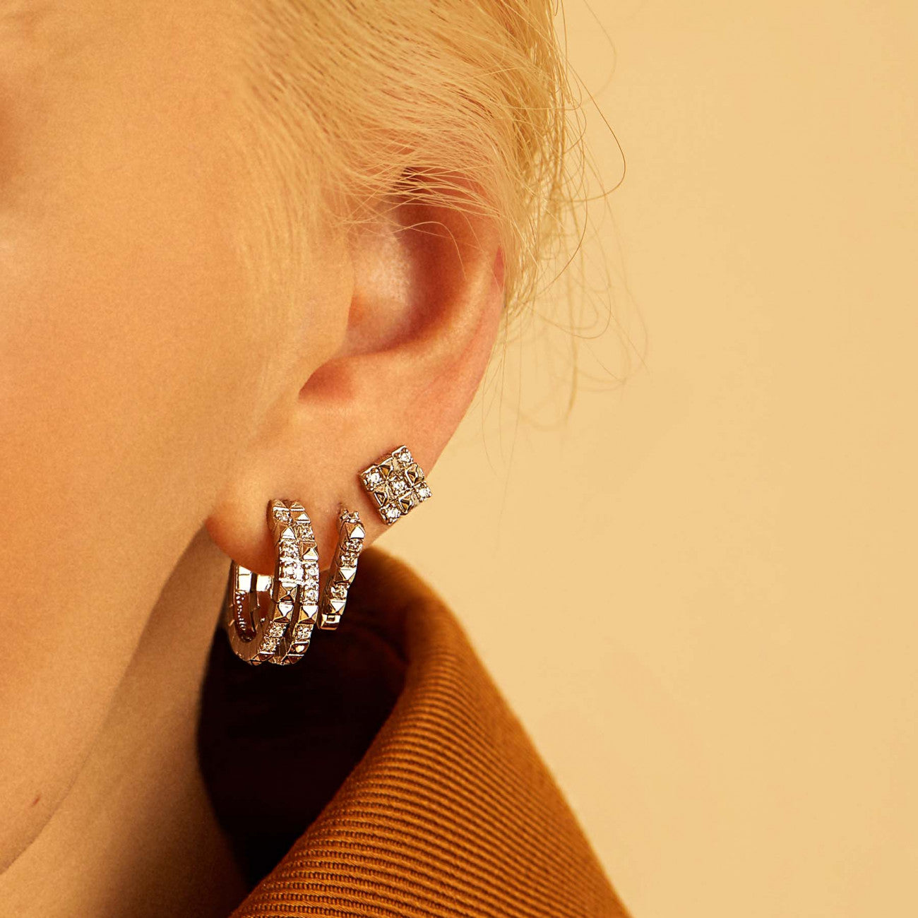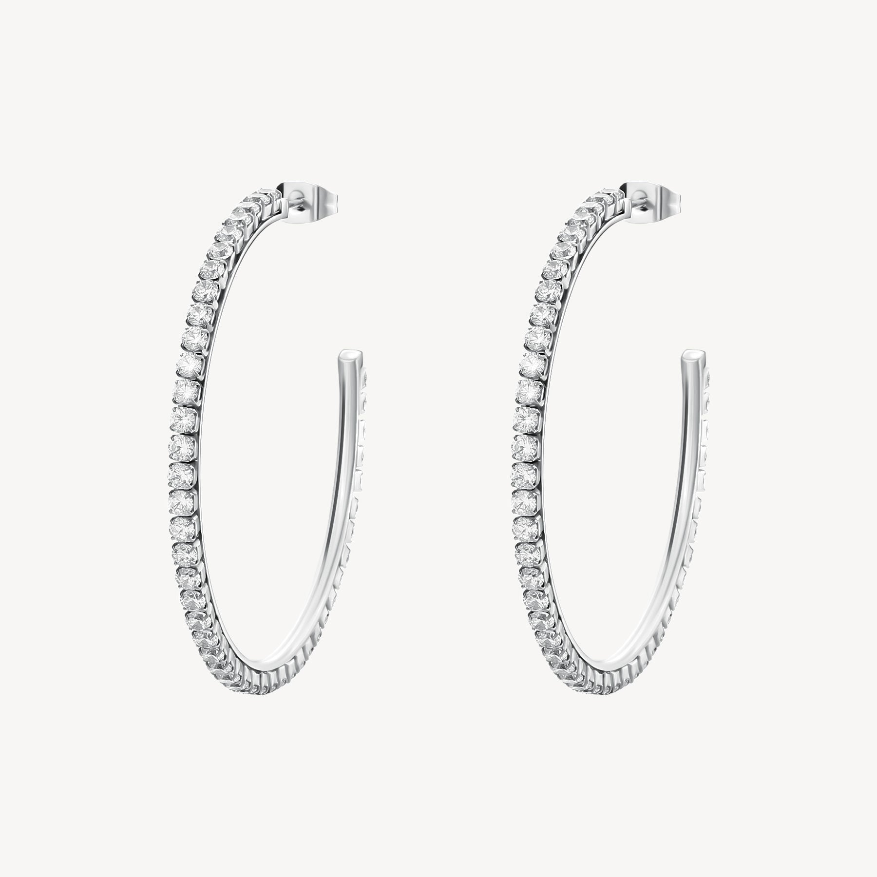 304 stainless steel medium hoop earrings and clear cubic zirconia.|BEIE014