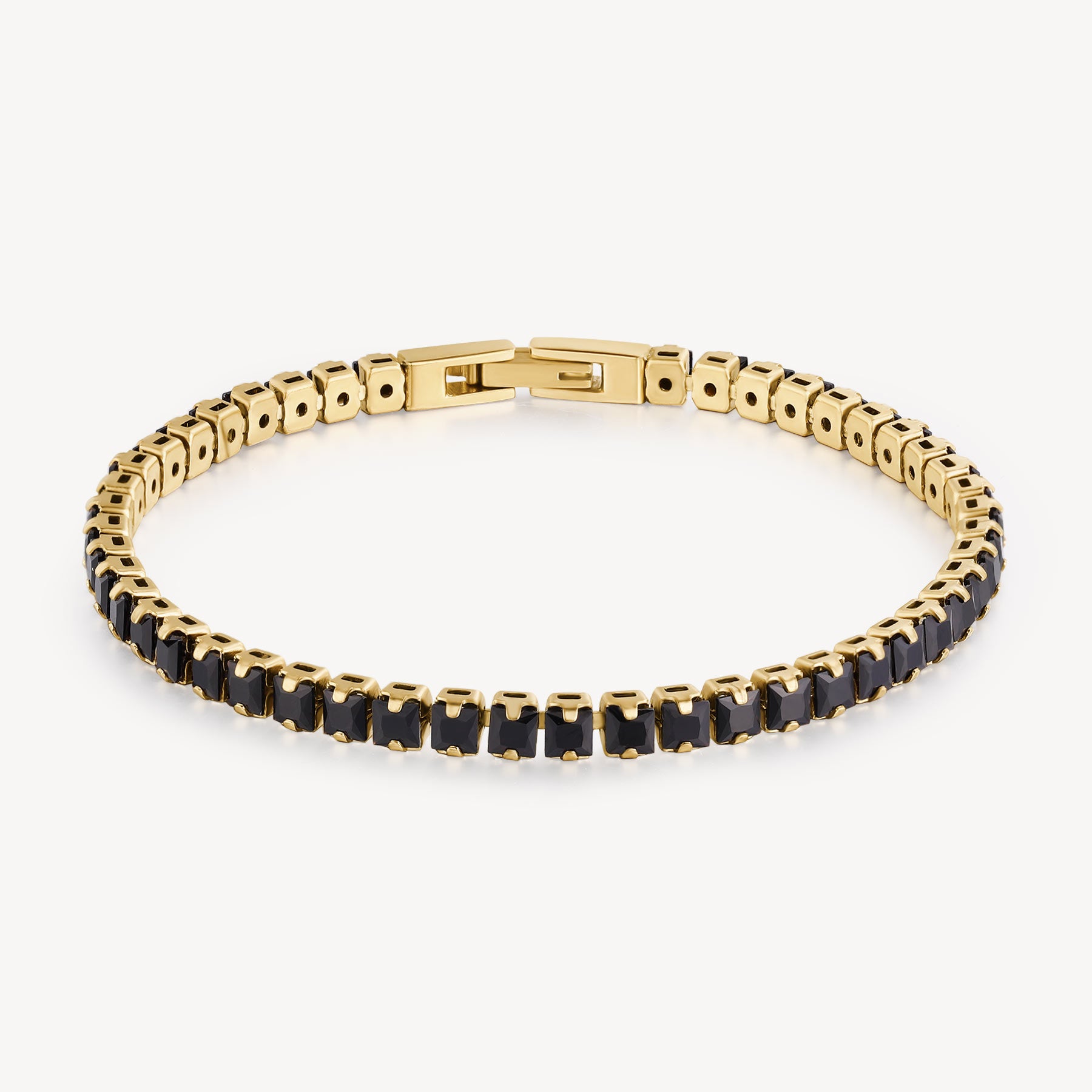 304 stainless steel bracelet and 14K gold pvd coating with black cubic zirconia.|BVD23