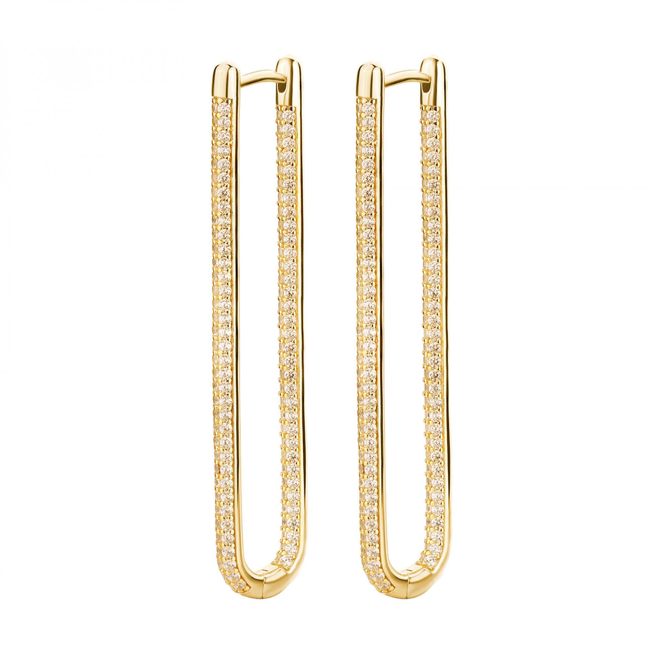 925 Sterling silver long earrings, gold plating, 280 white cubic zirconia | rzbi76