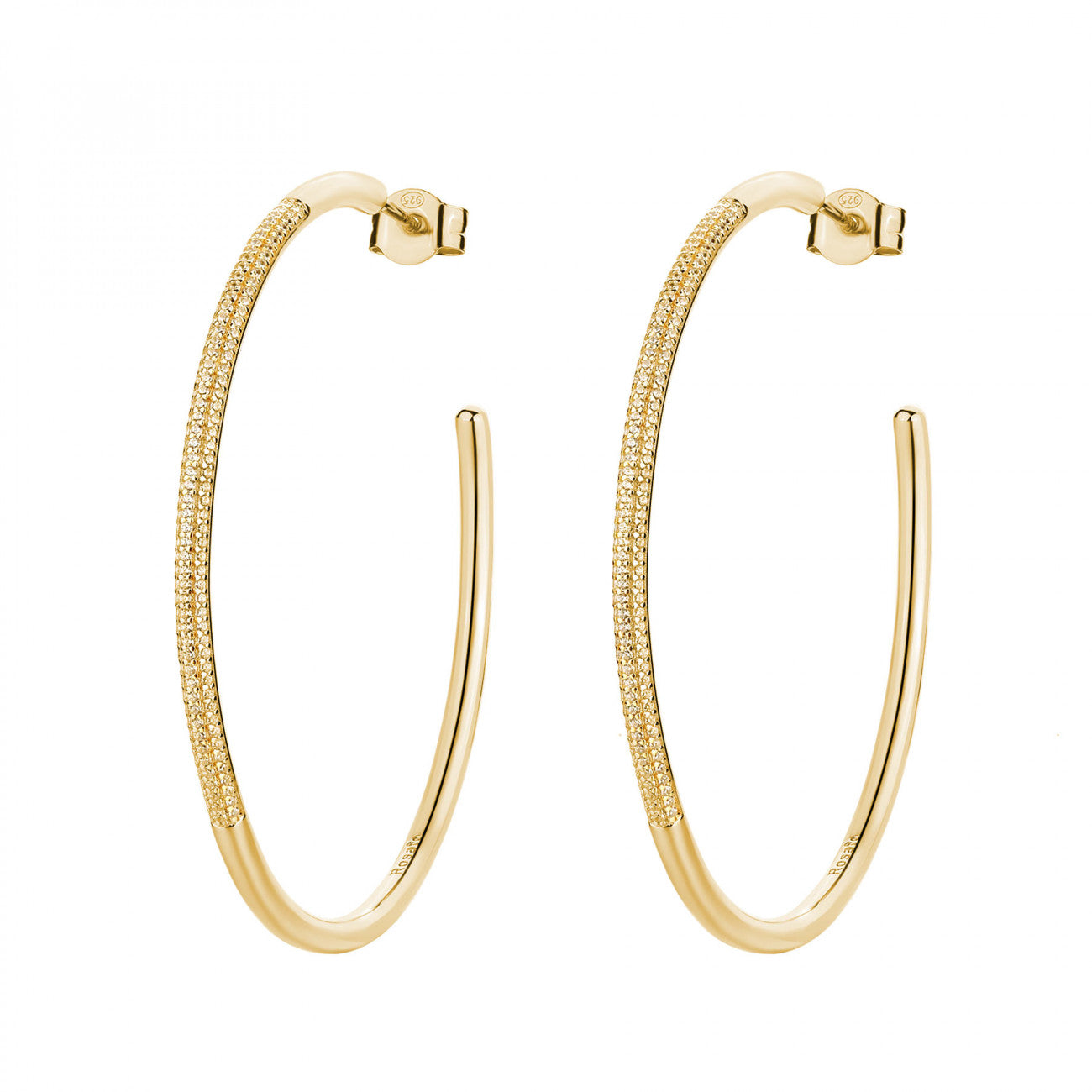 925 Sterling silver hoop earrings, gold plating, 318 white cubic zirconia | rzbi78