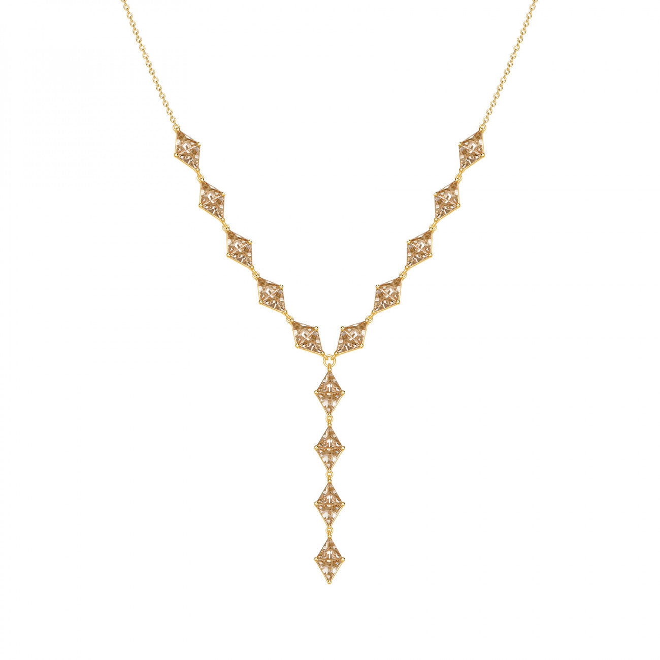 925 Sterling silver tie necklace, gold plating, 28 champagne cubic zirconia | rzvt04