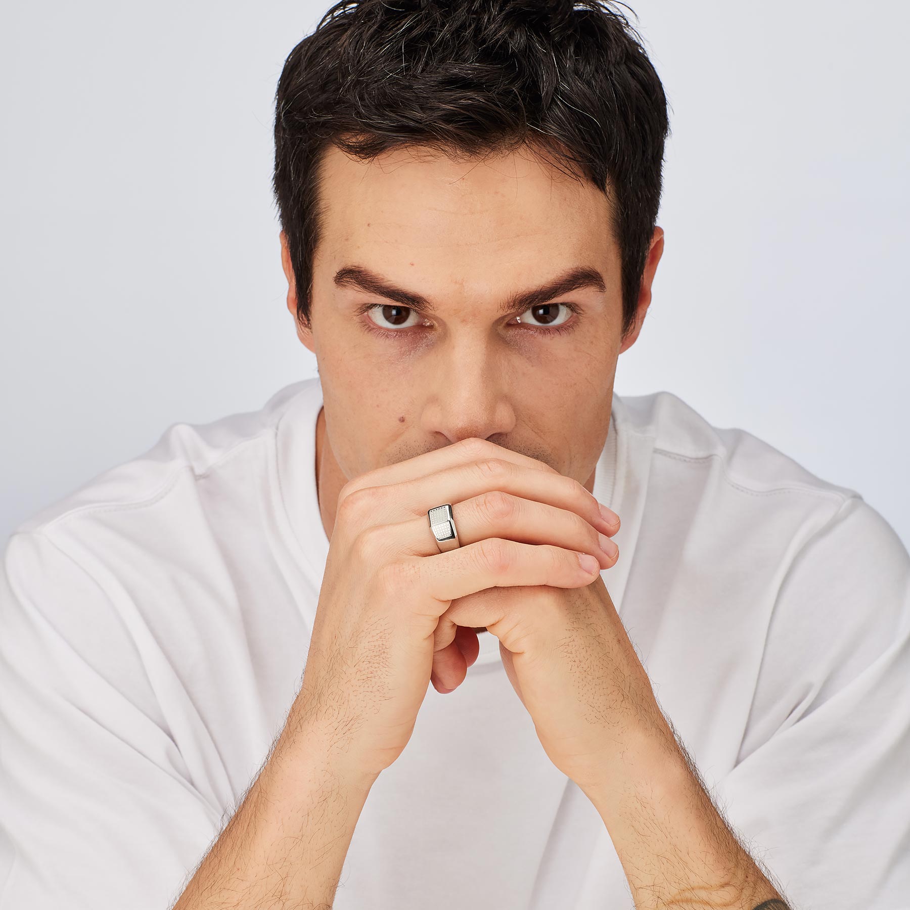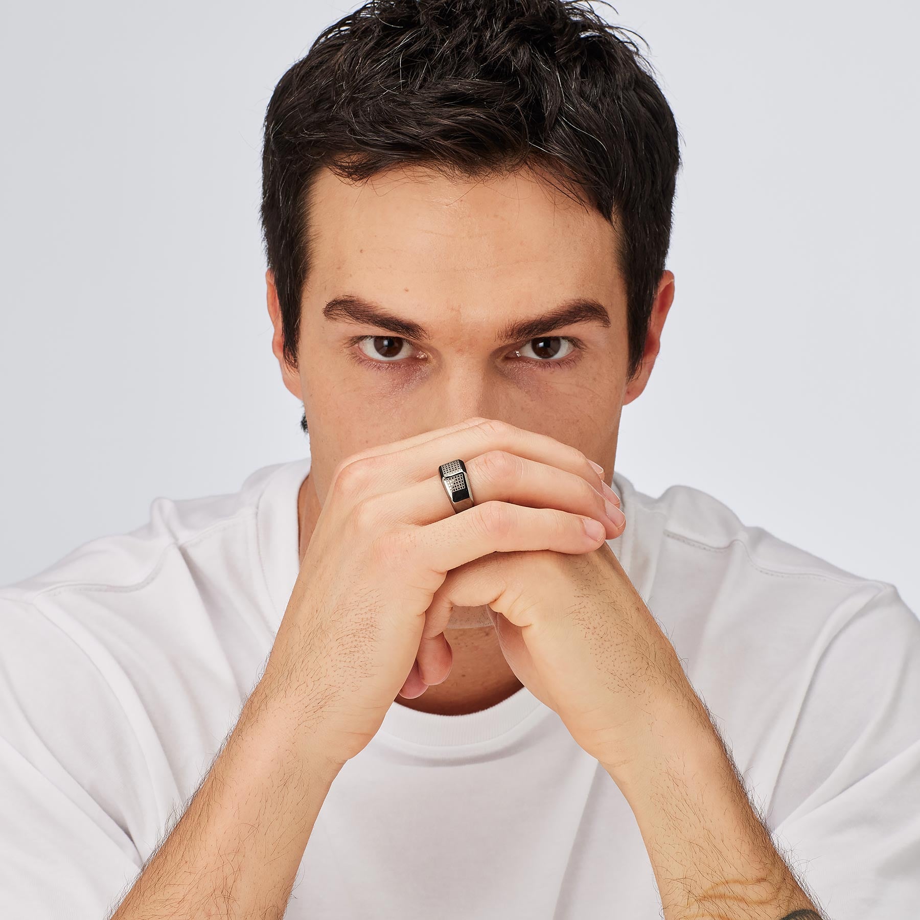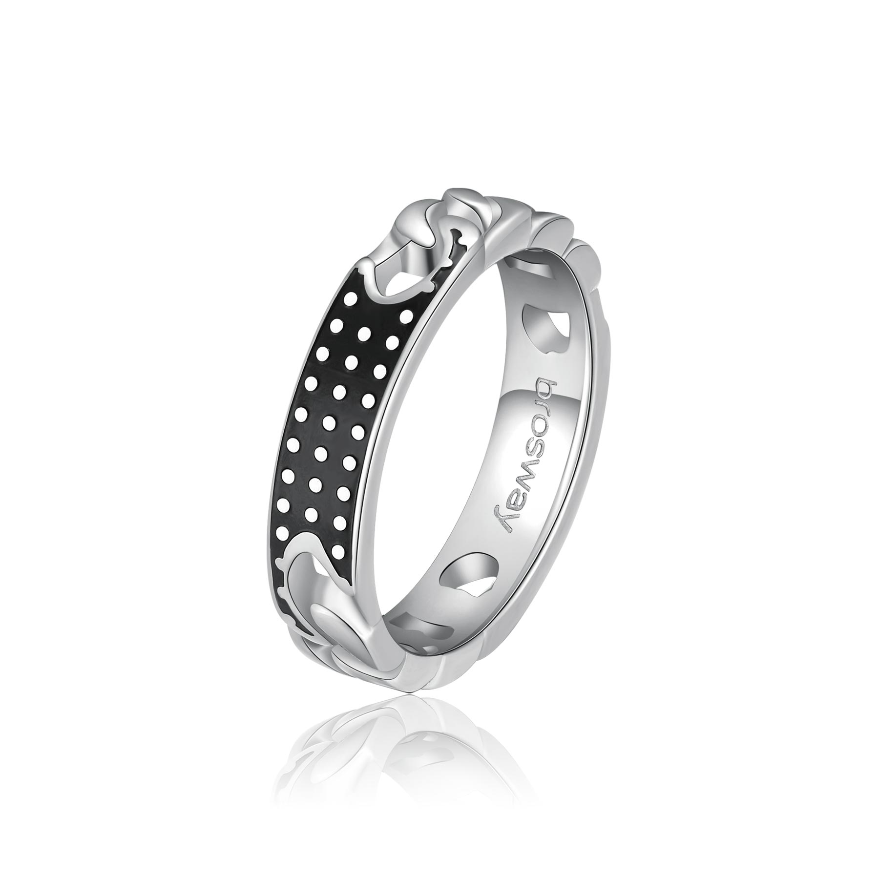 316L stainless steel ring with black enamel.