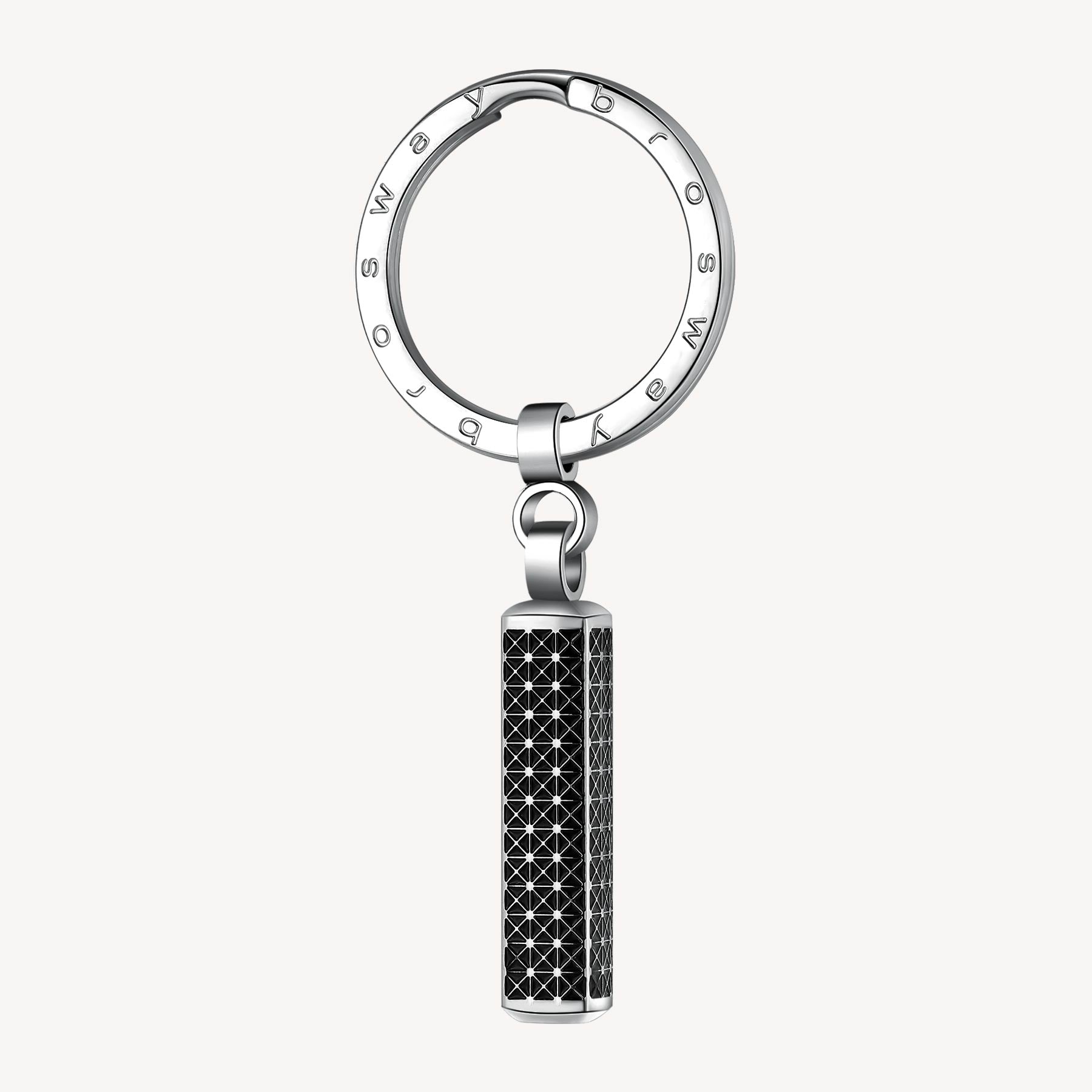 316L stainless steel keychain with black enamel.