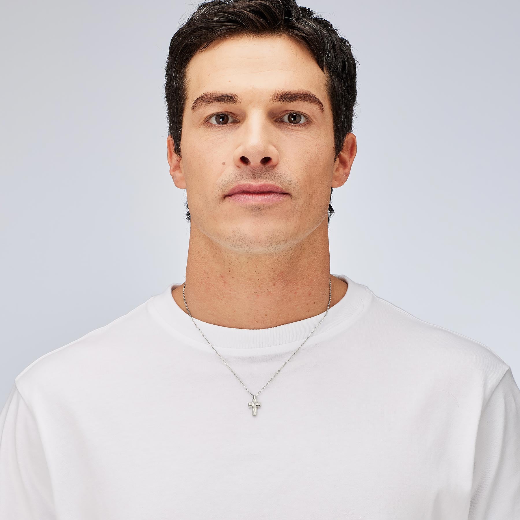 316L stainless steel choker necklace with a cross-shaped pendant and cubic zirconia.|BVD01