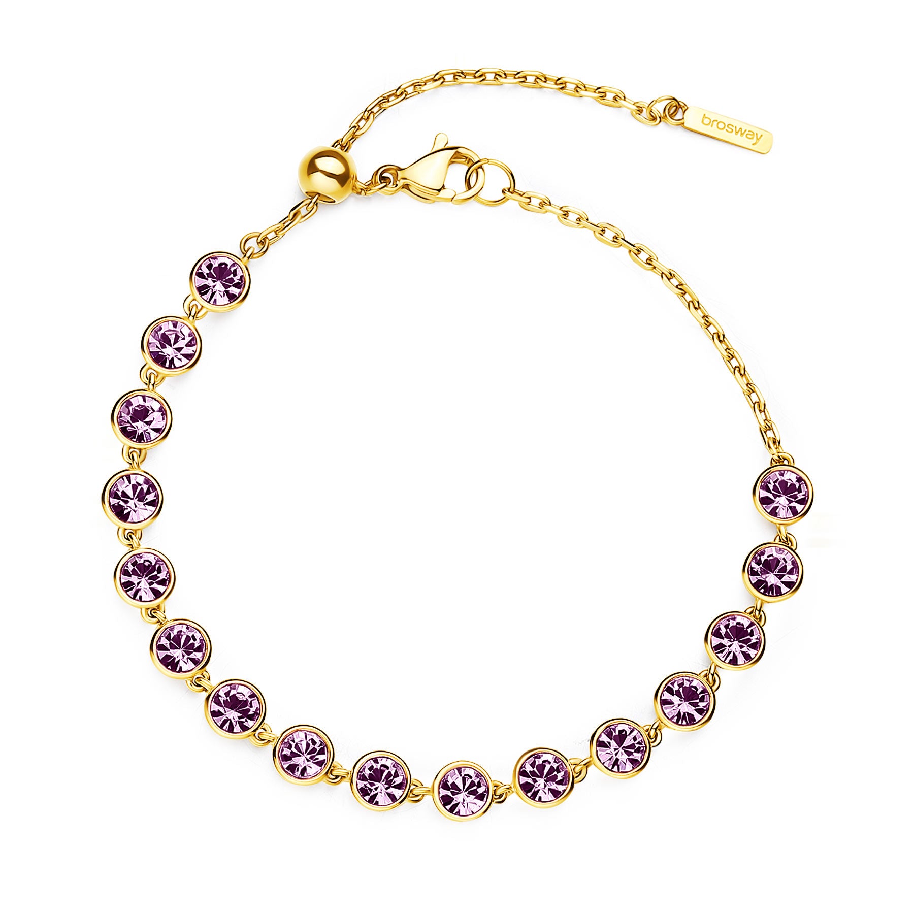 316L stainless steel bracelet and 14K gold pvd coating with light amethyst color crystals.