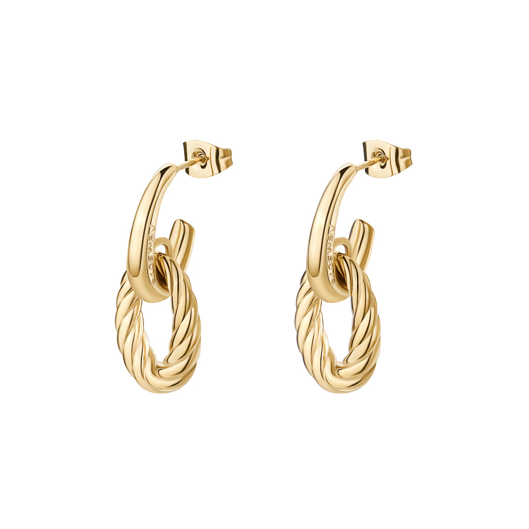 AURA dangling hoop earrings in 316L stainless steel, gold colored pvd finish