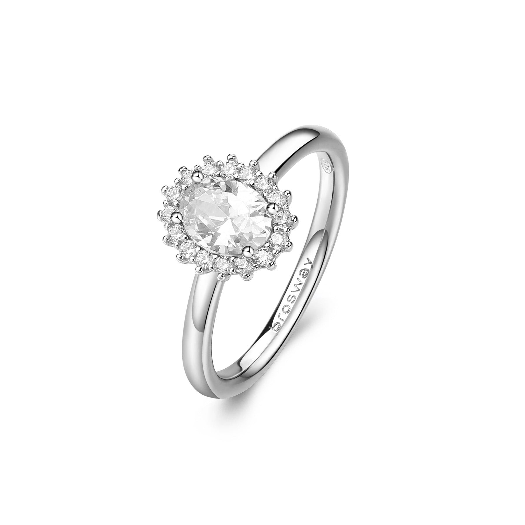 925‰ rhodium-plated sterling silver Kate ring with clear oval cubic zirconia.
