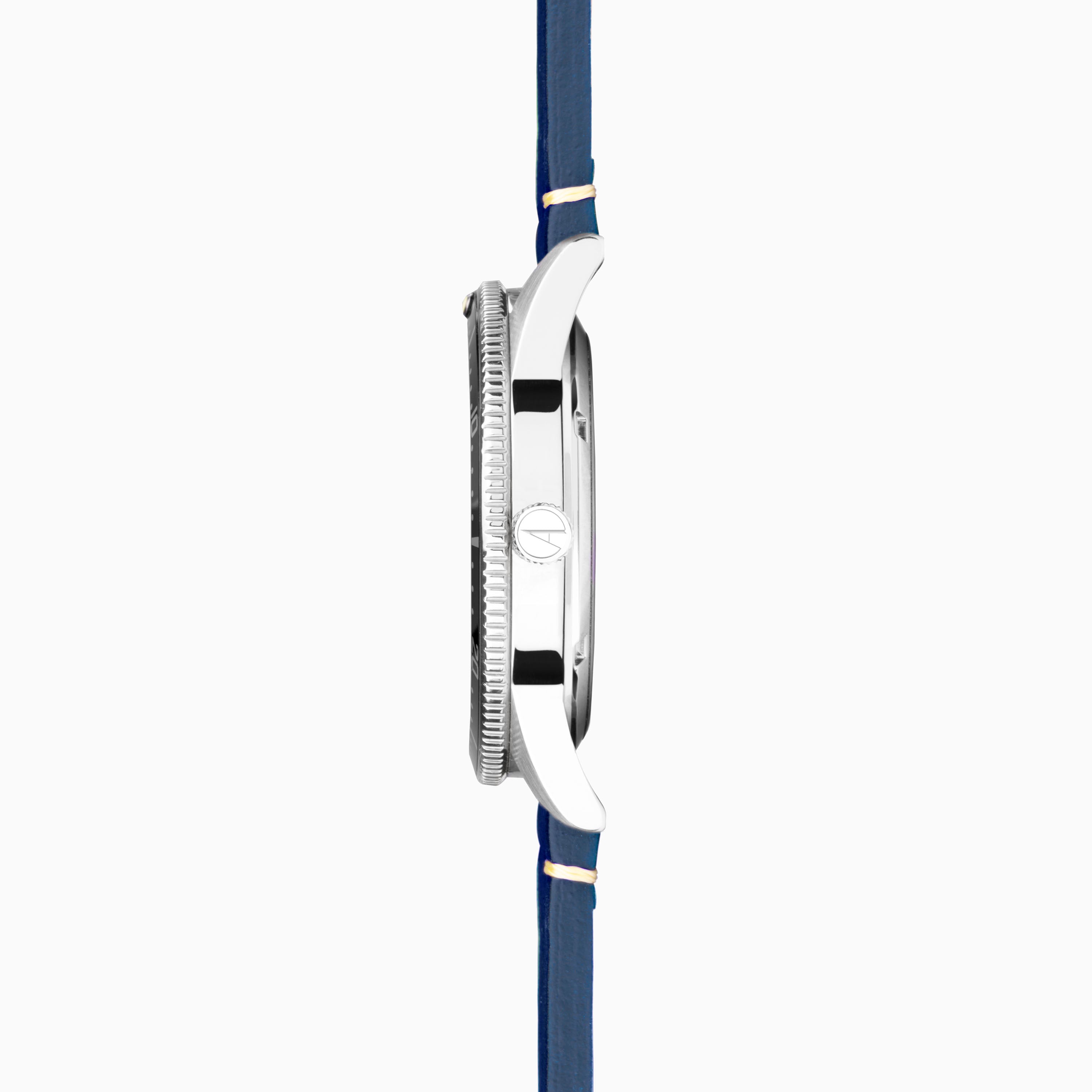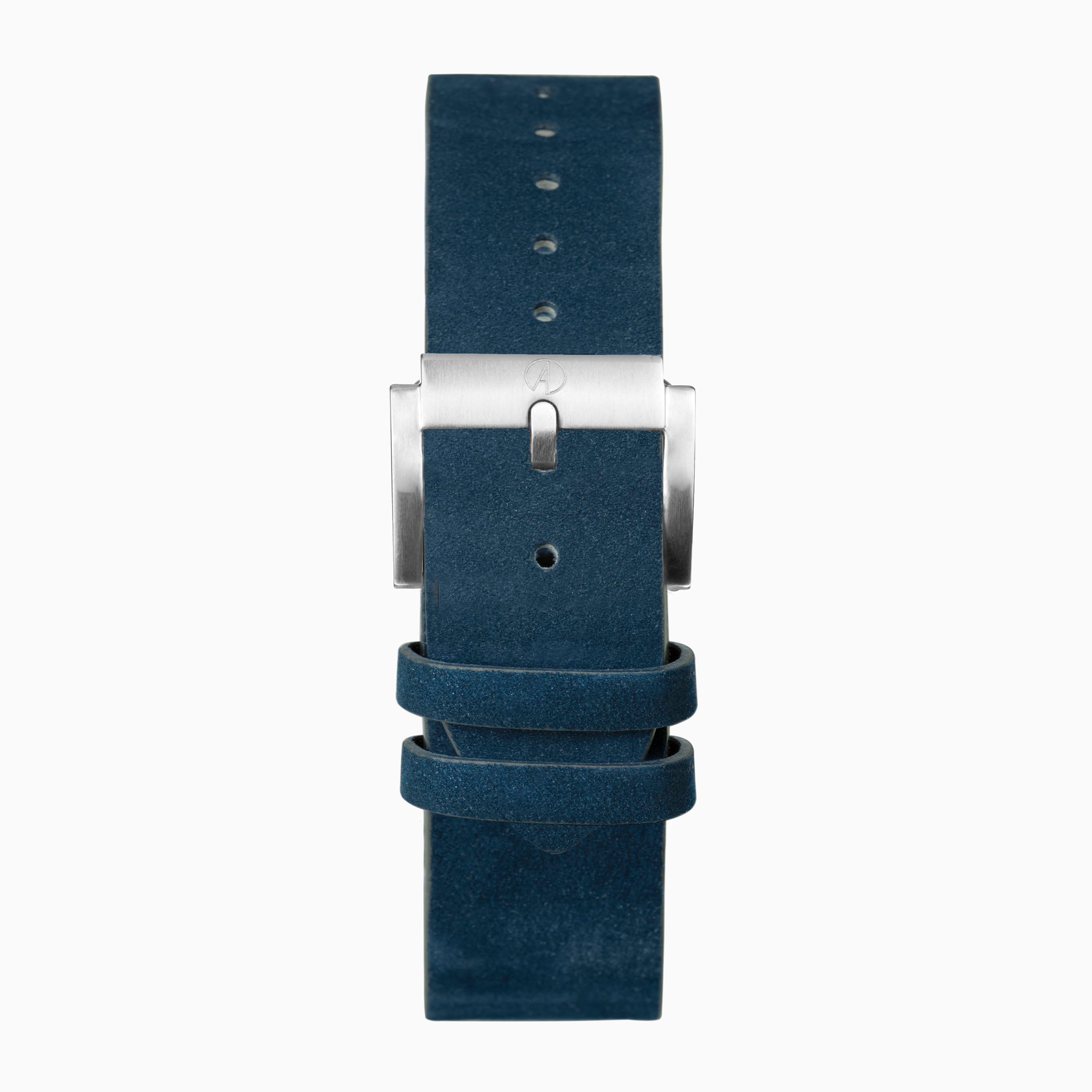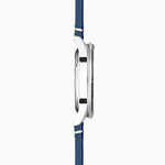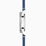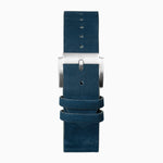 The watch has a solid stainless steel case enclosing a Windermere blue dial with luminous hands and hour markers and a date display. Fastened with an interchangeable, quick release blue leather strap so you can easily change your strap.