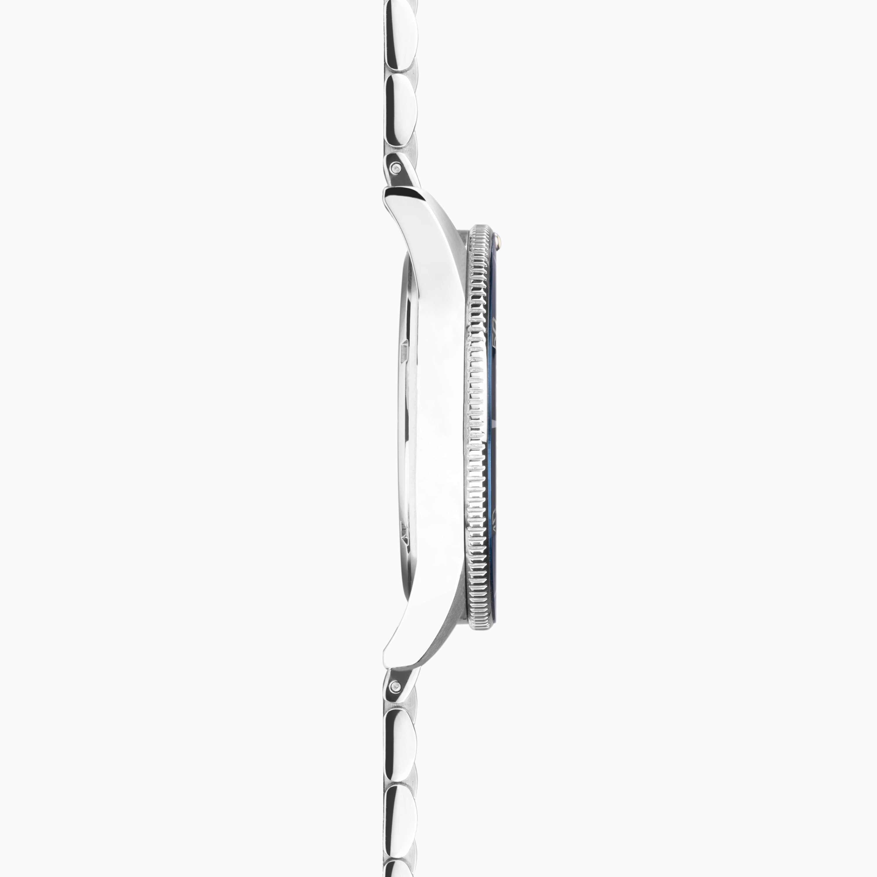 This model has a solid stainless steel case enclosing a Windermere blue dial with two sub-dials, luminous hands and hour markers and a date display. Fastened with an interchangeable, quick release solid stainless steel bracelet so you can easily change your strap.