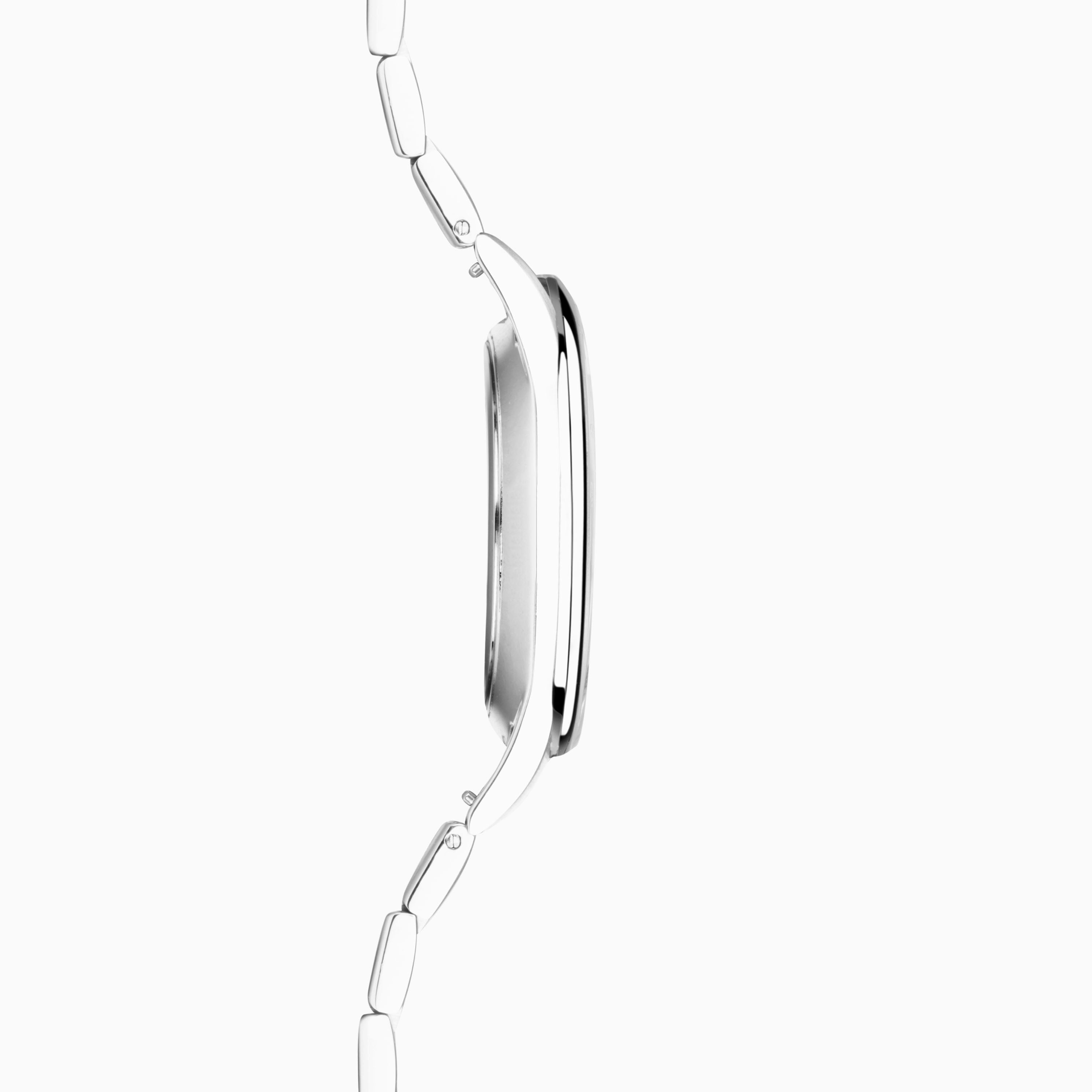 Fastened with a quick release, interchangeable stainless steel bracelet, the case back is also engravable and the watch is water resistant up to 50 metres.