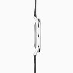 Fastened with a quick release, interchangeable black leather strap, the case back is also engravable and the watch is water resistant up to 50 metres.
