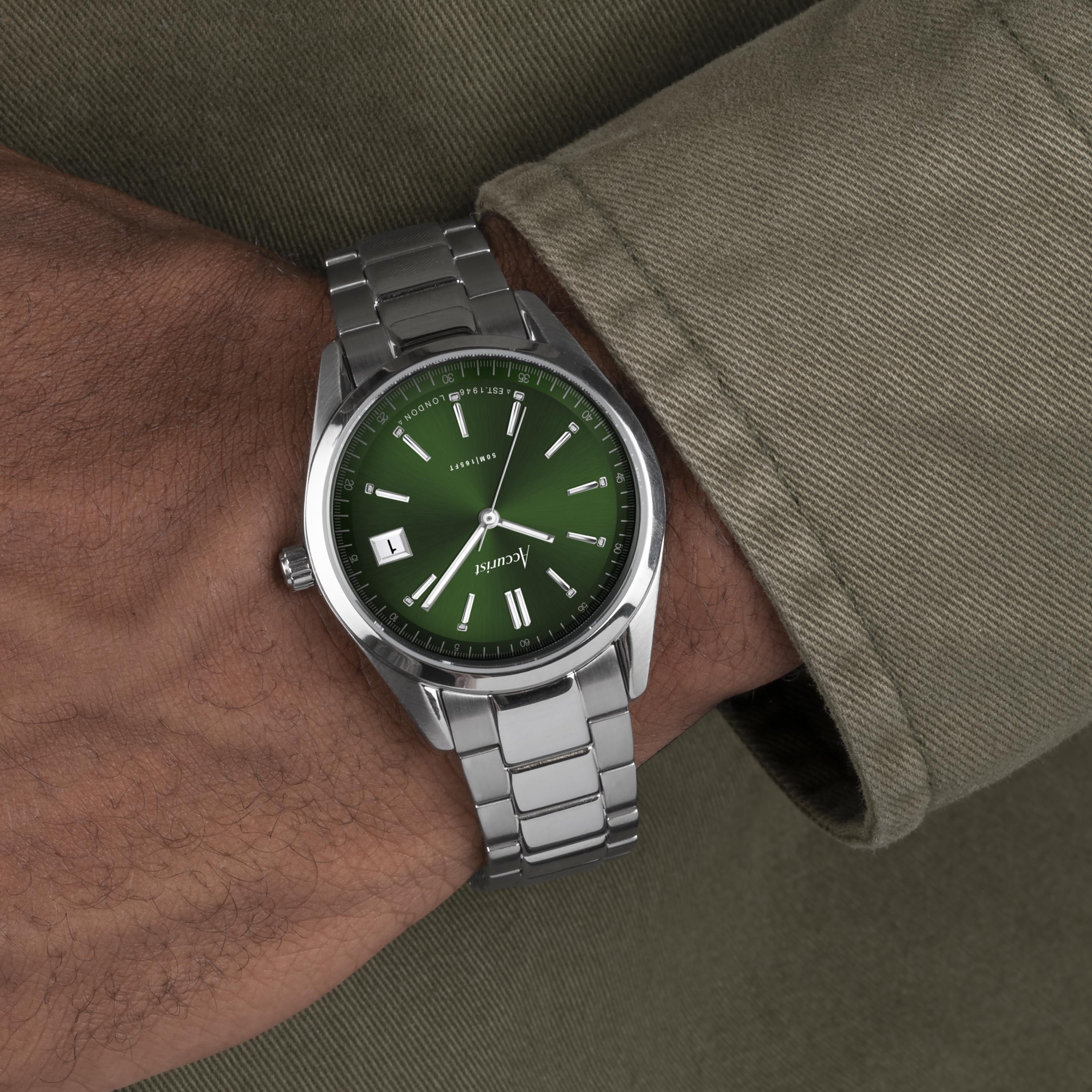 Accurist Everyday Unisex Watch | Silver Case & Stainless Steel Bracelet With Forest Green Dial | 36mm