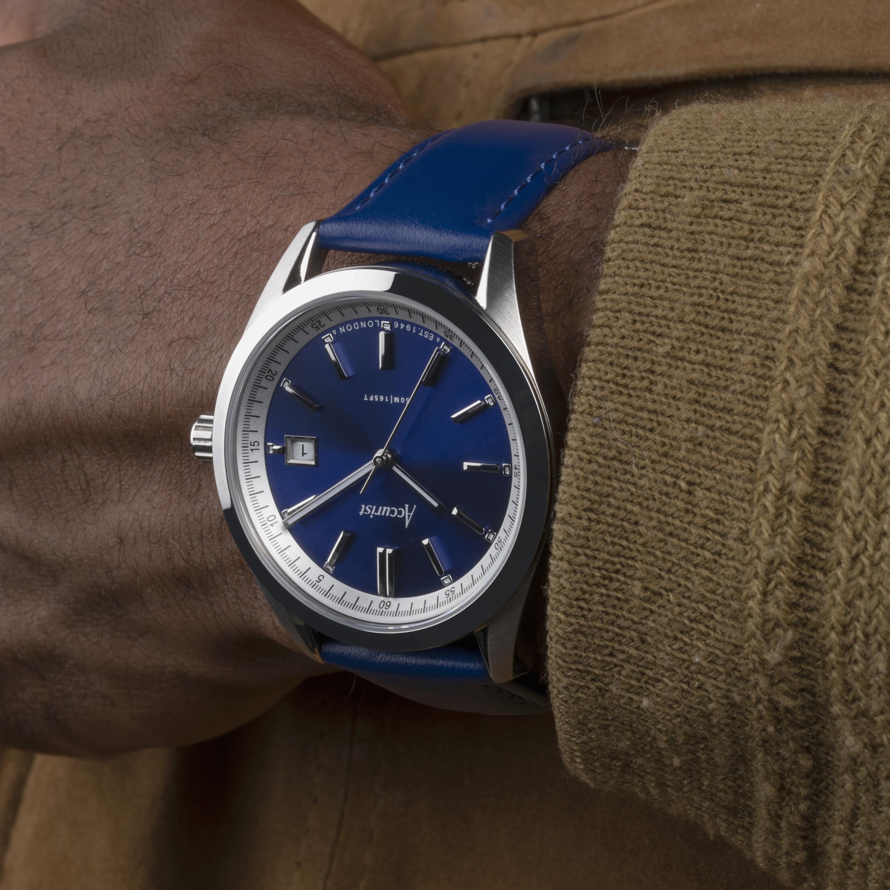 Accurist Everyday Men's Watch | Silver Case & Blue Leather Strap with Oxford Blue Dial | 40mm