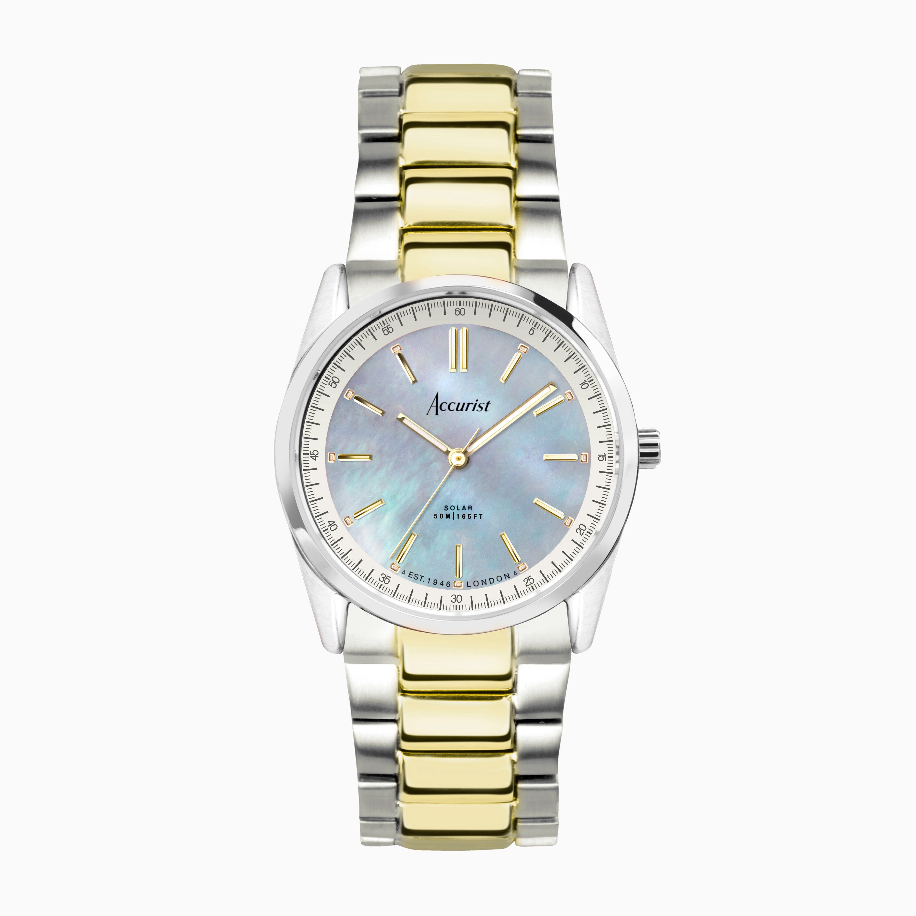 Accurist Everyday Solar Ladies Watch | Silver Stainless Steel Case & Two Tone Bracelet with Blue Mother-of-Pearl Dial | 30mm