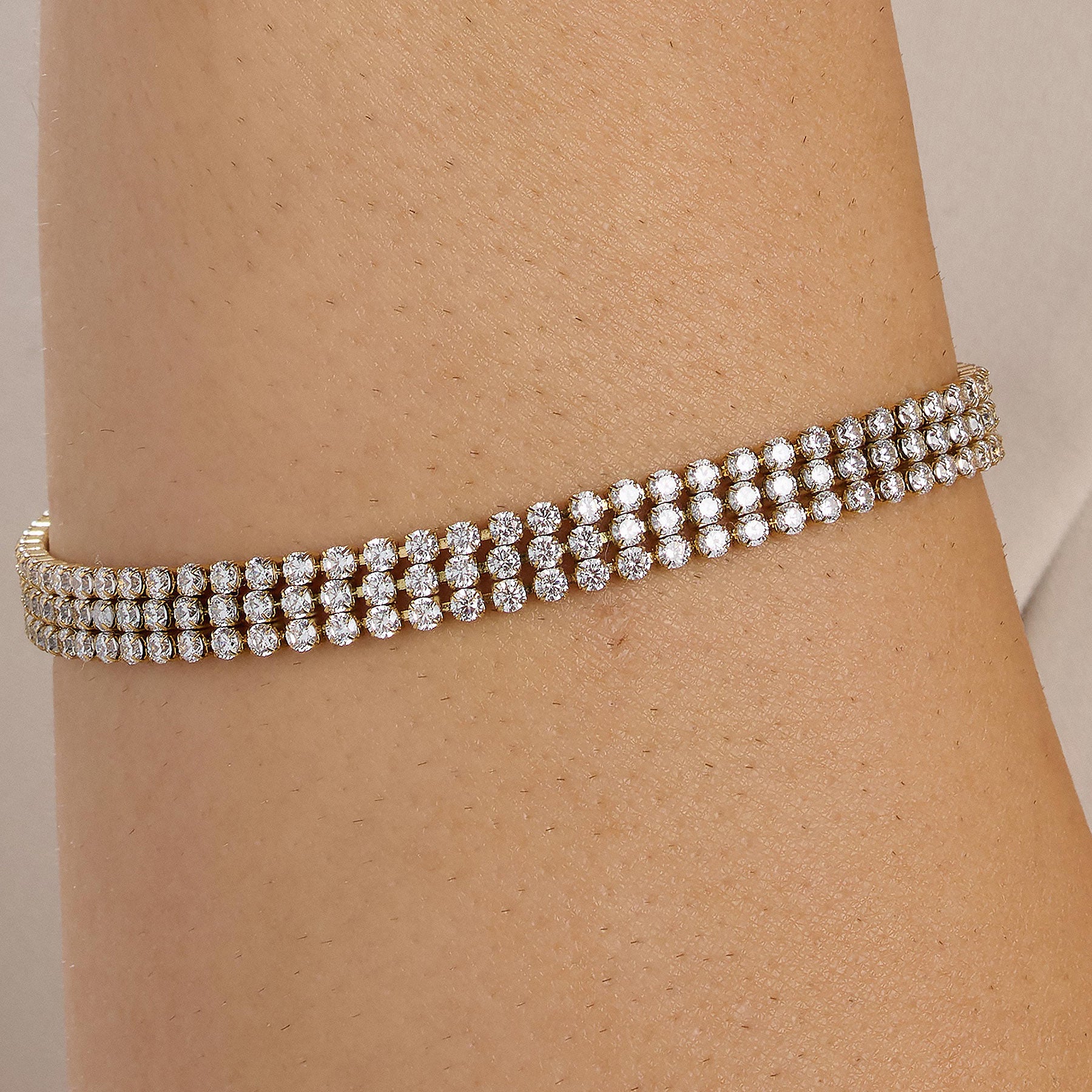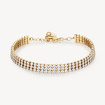 304 stainless steel tennis bracelet, 14K gold pvd coating and clear cubic zirconia.|BEI092