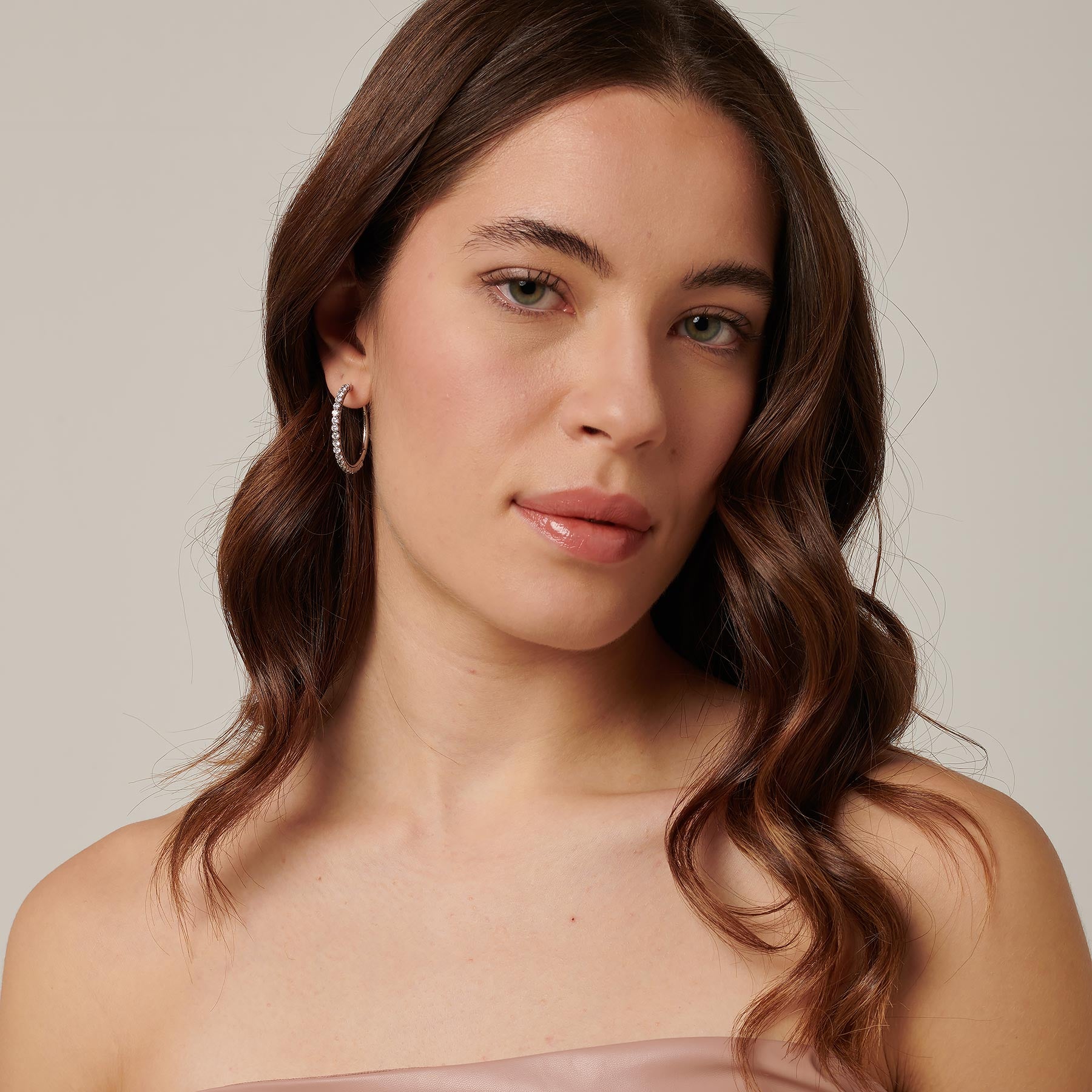 304 stainless steel medium hoop earrings and clear cubic zirconia.|BEIE014