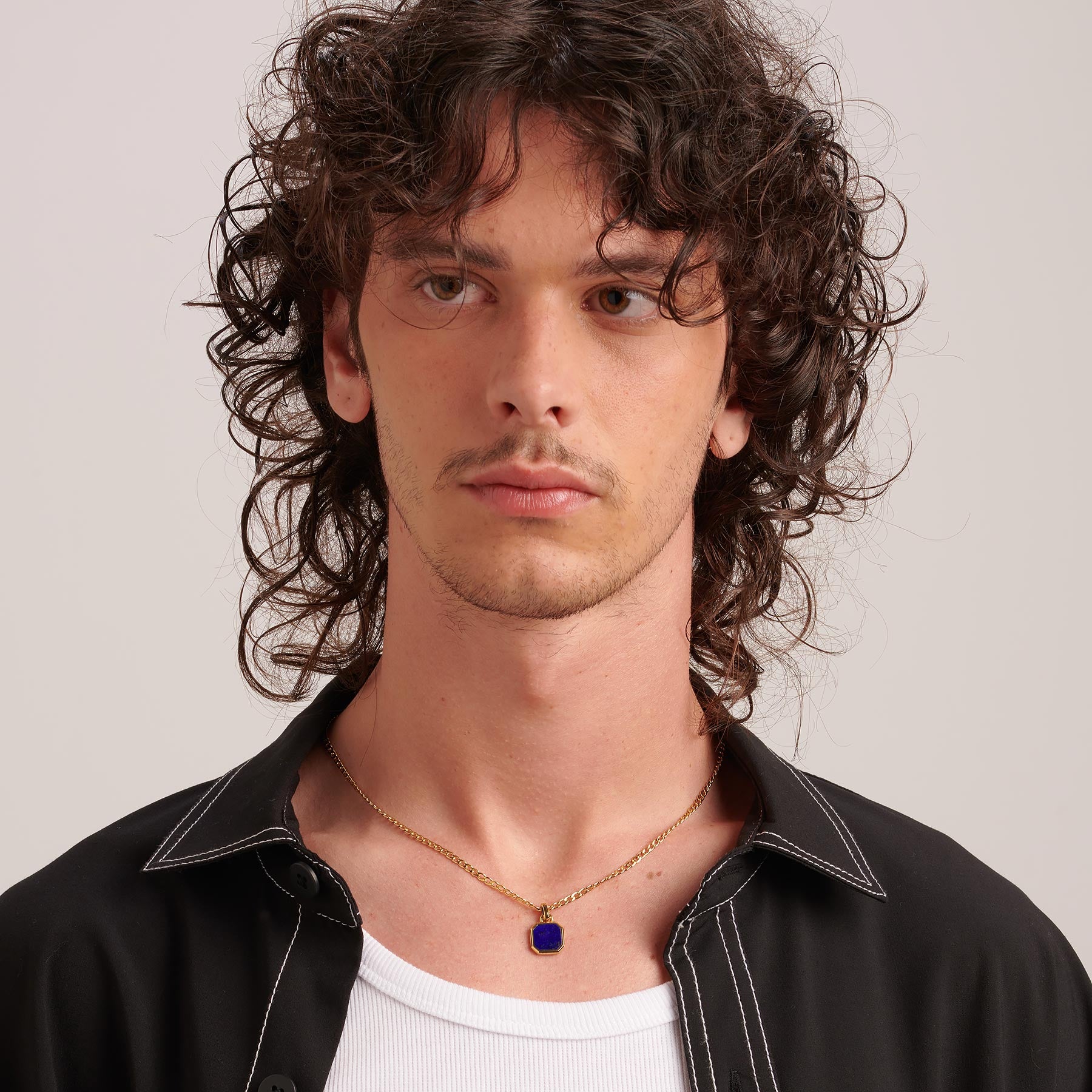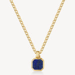 316L stainless steel chain necklace and 14K gold pvd coating with pendant and lapis lazuli pendant.|BIK127