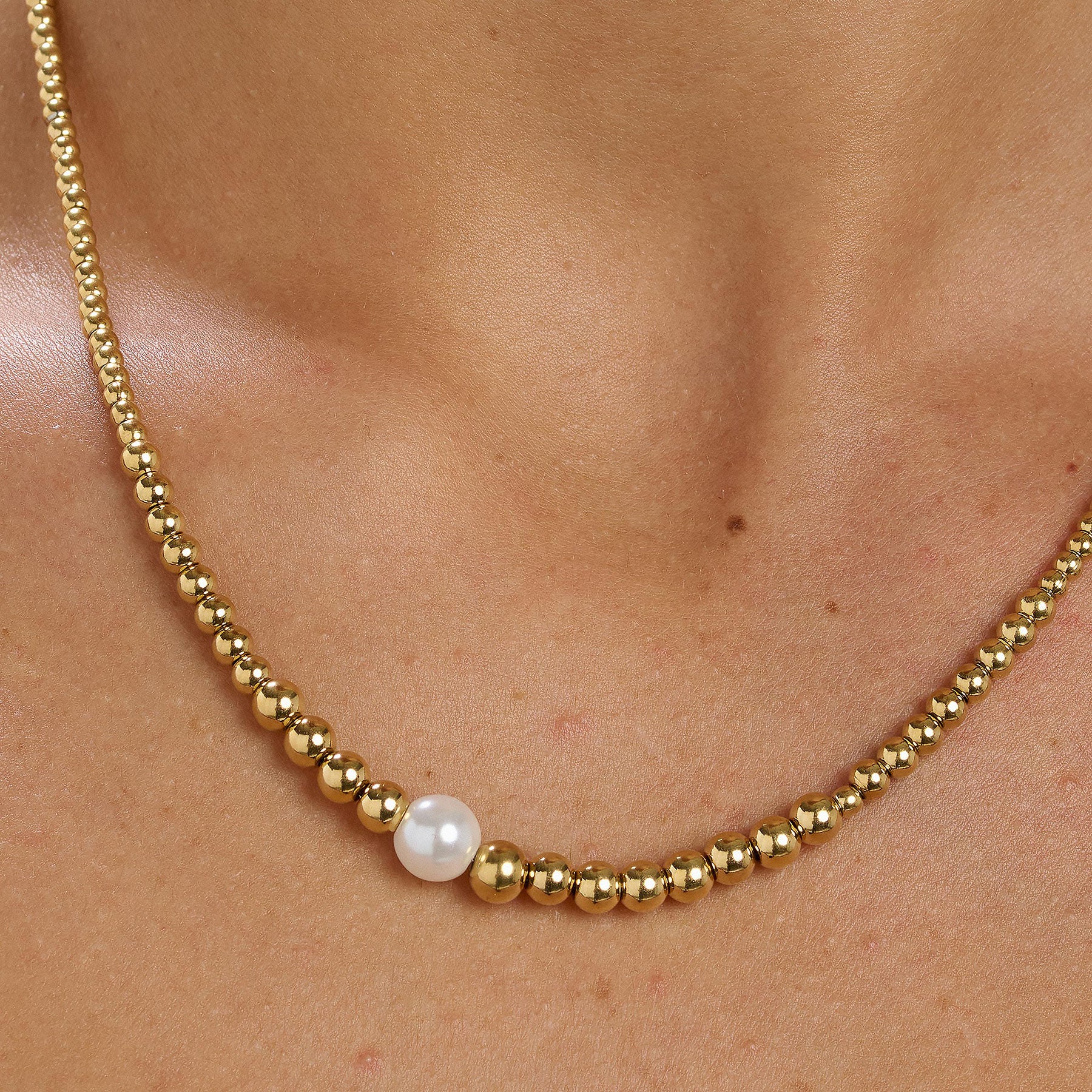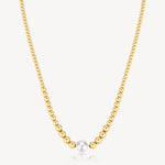 316L stainless steel ball chain necklace with 14K gold pvd coating and a shell pearl.|BPC04