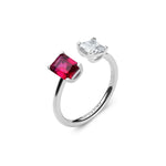 925‰ rhodium-plated sterling silver ring with clear square cubic zirconia and ruby color baguette cubic zirconia.