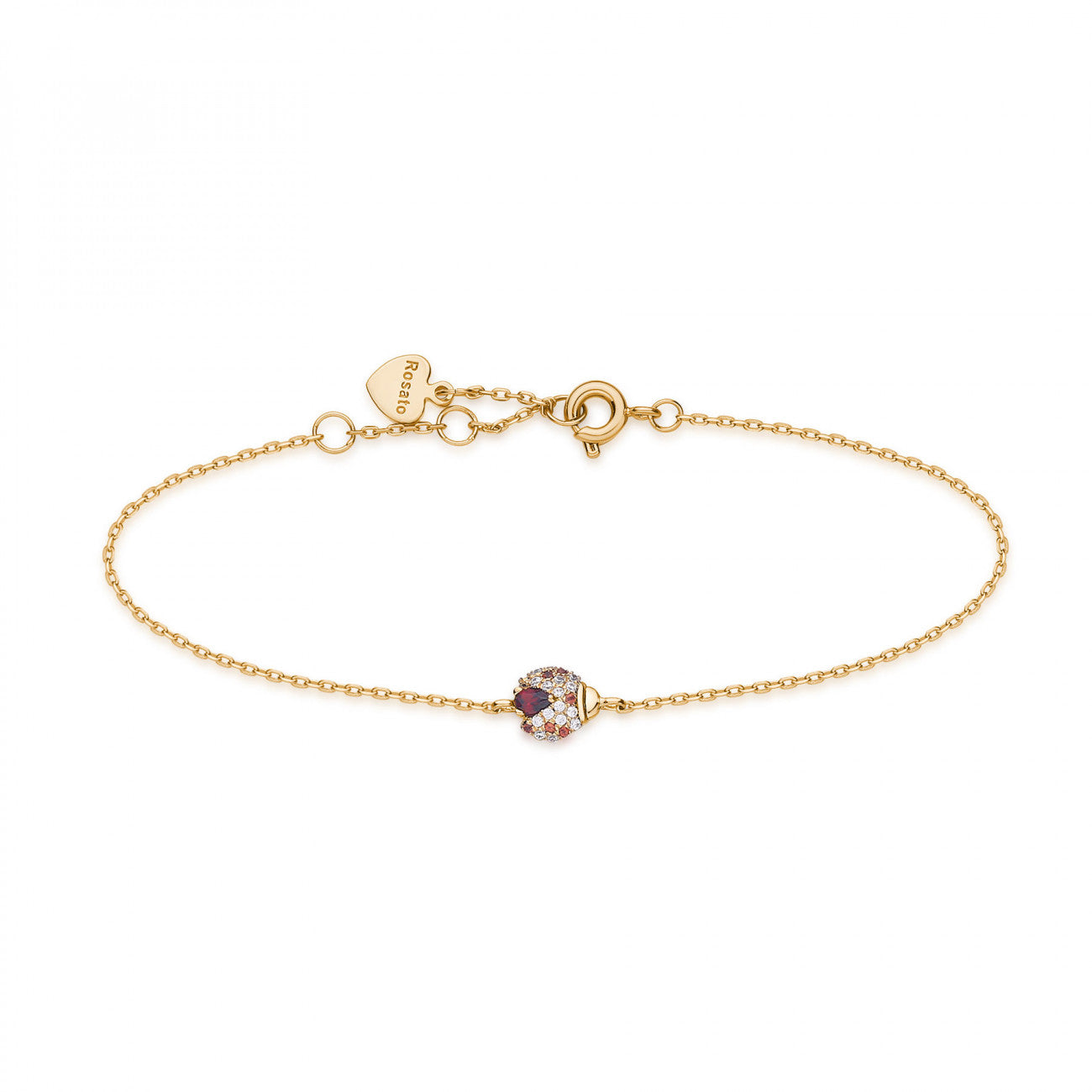 9k gold soft bracelet with ladybug, 8 garnet stones 0.11 ct and 23 diamonds 0.059 carat | rgab005