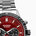 Sekonda Velocity Chronograph Mens Watch | Silver Case & Stainless Steel Bracelet with Red Dial | 1914